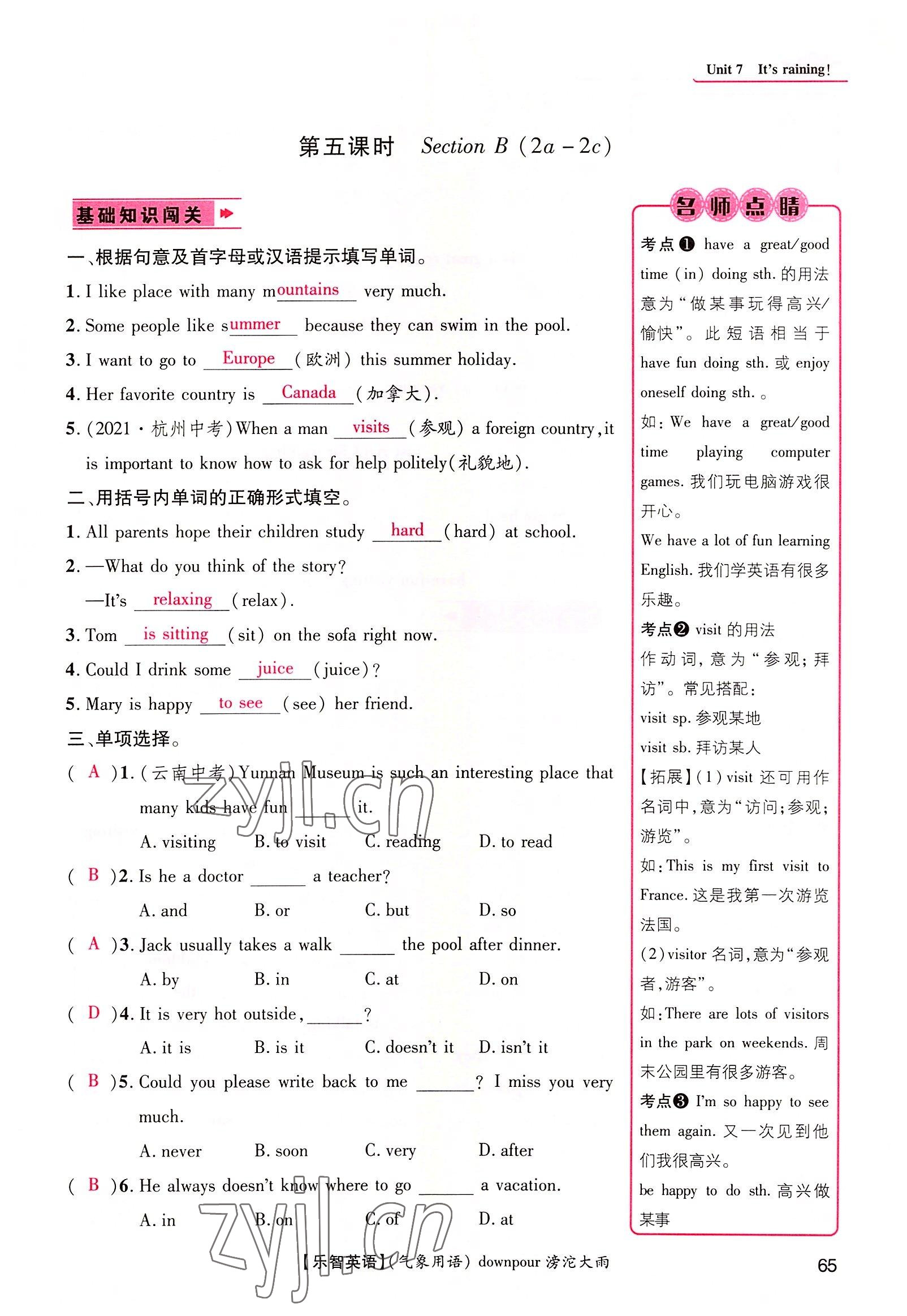 注:目前有些书本章节名称可能整理的还不是很完善,但都是按照顺序排列的,请同学们按照顺序仔细查找。练习册 2022年精英新课堂七年级英语下册人教版黄冈孝感咸宁专版 答案主要是用来给同学们做完题方便对答案用的,请勿直接抄袭。