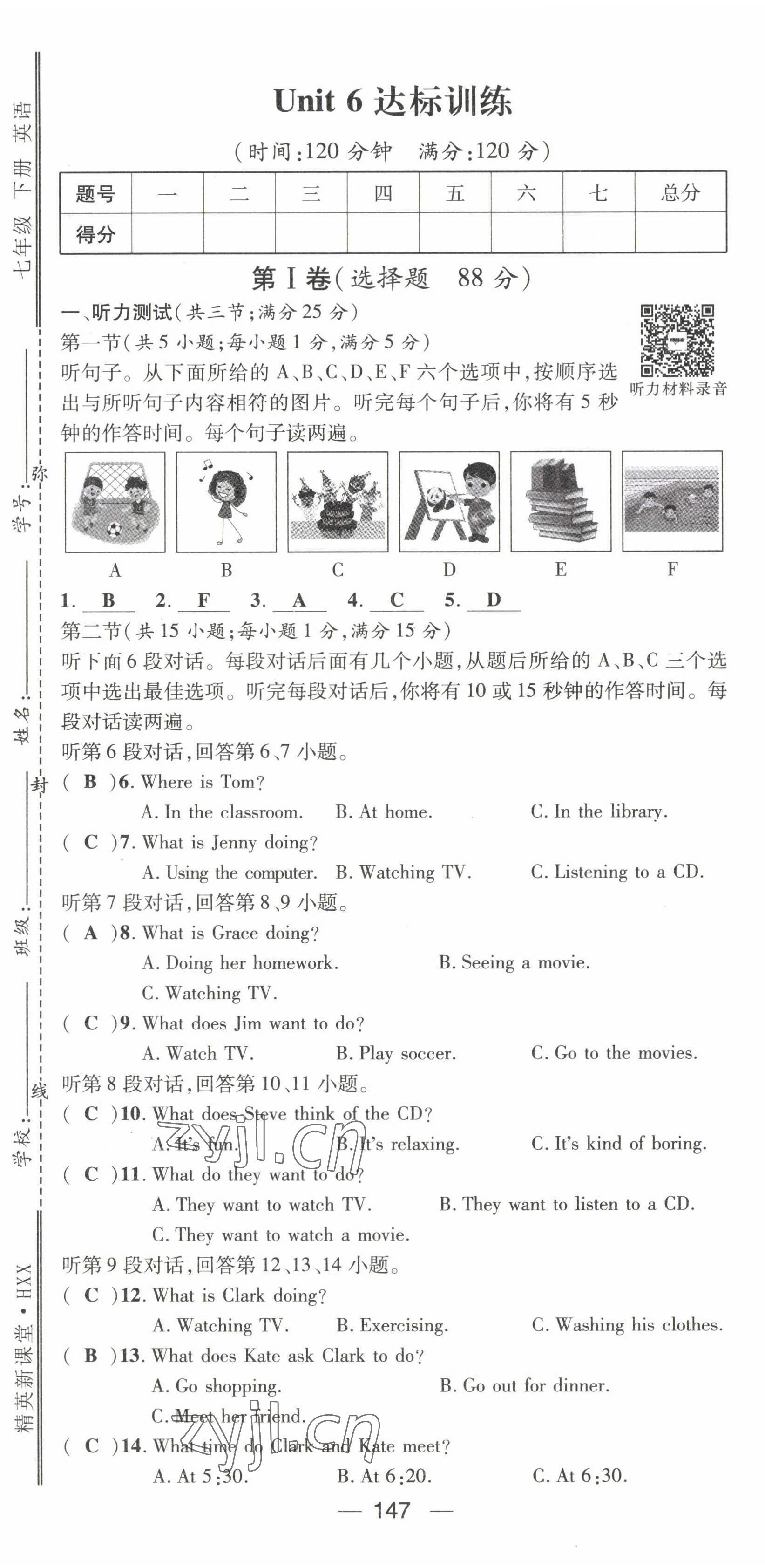 注:目前有些书本章节名称可能整理的还不是很完善,但都是按照顺序排列的,请同学们按照顺序仔细查找。练习册 2022年精英新课堂七年级英语下册人教版黄冈孝感咸宁专版 答案主要是用来给同学们做完题方便对答案用的,请勿直接抄袭。