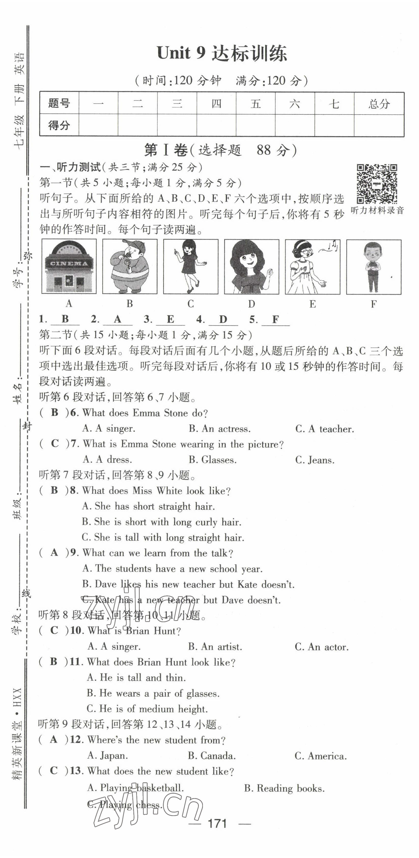 注:目前有些书本章节名称可能整理的还不是很完善,但都是按照顺序排列的,请同学们按照顺序仔细查找。练习册 2022年精英新课堂七年级英语下册人教版黄冈孝感咸宁专版 答案主要是用来给同学们做完题方便对答案用的,请勿直接抄袭。