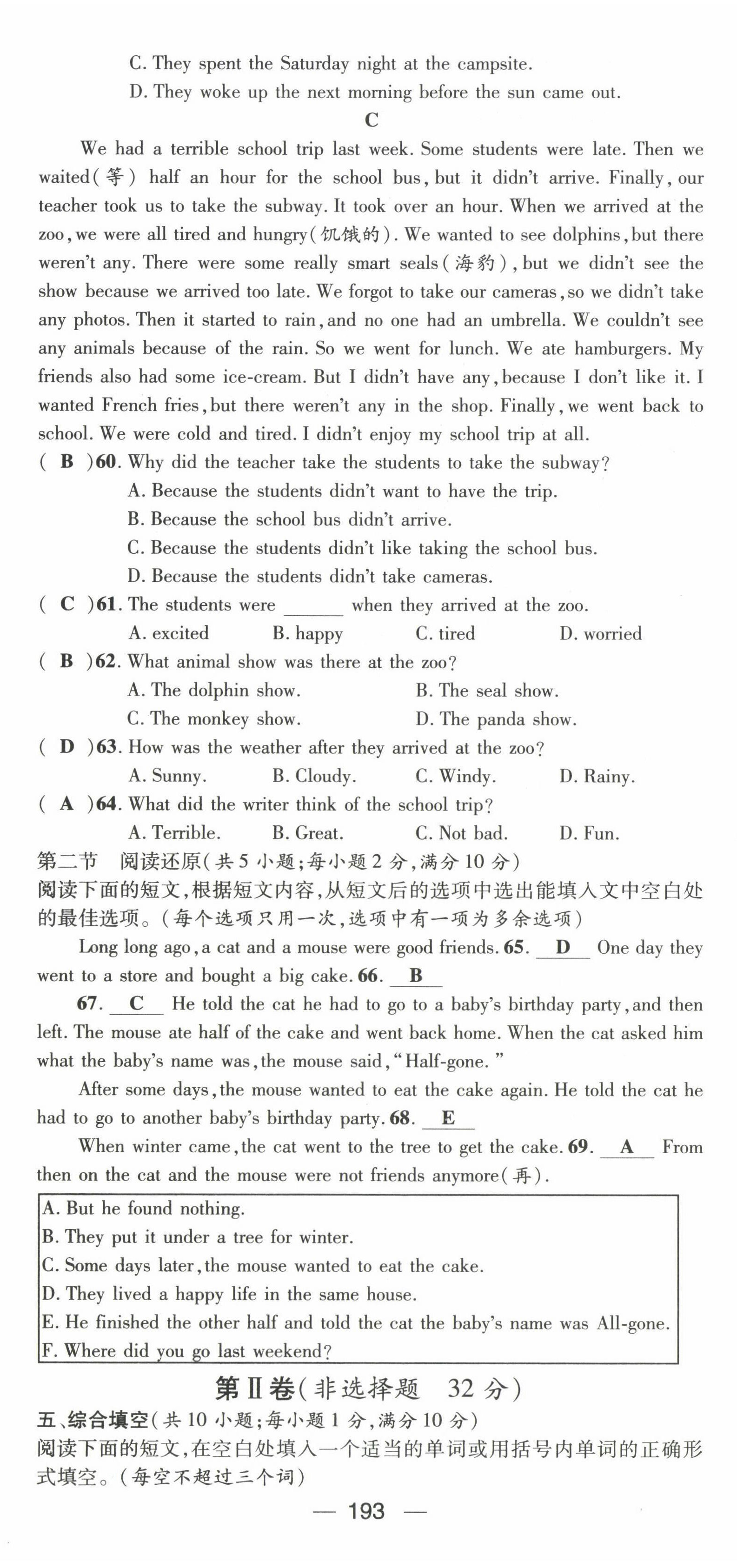 注:目前有些书本章节名称可能整理的还不是很完善,但都是按照顺序排列的,请同学们按照顺序仔细查找。练习册 2022年精英新课堂七年级英语下册人教版黄冈孝感咸宁专版 答案主要是用来给同学们做完题方便对答案用的,请勿直接抄袭。