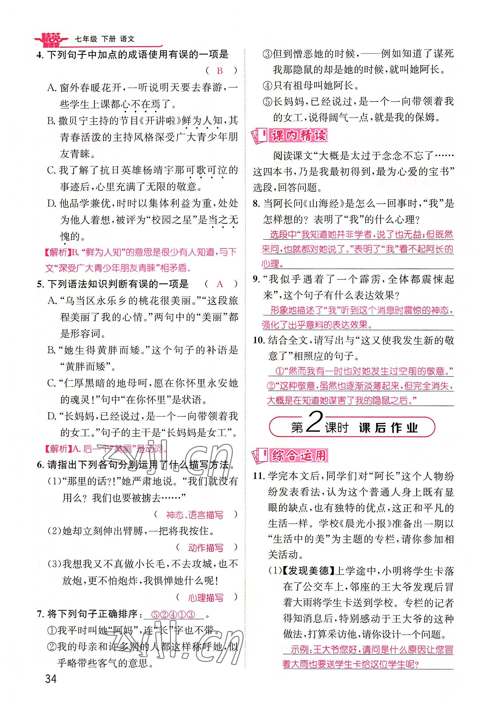 2022年精英新课堂七年级语文下册人教版黄冈孝感咸宁专版