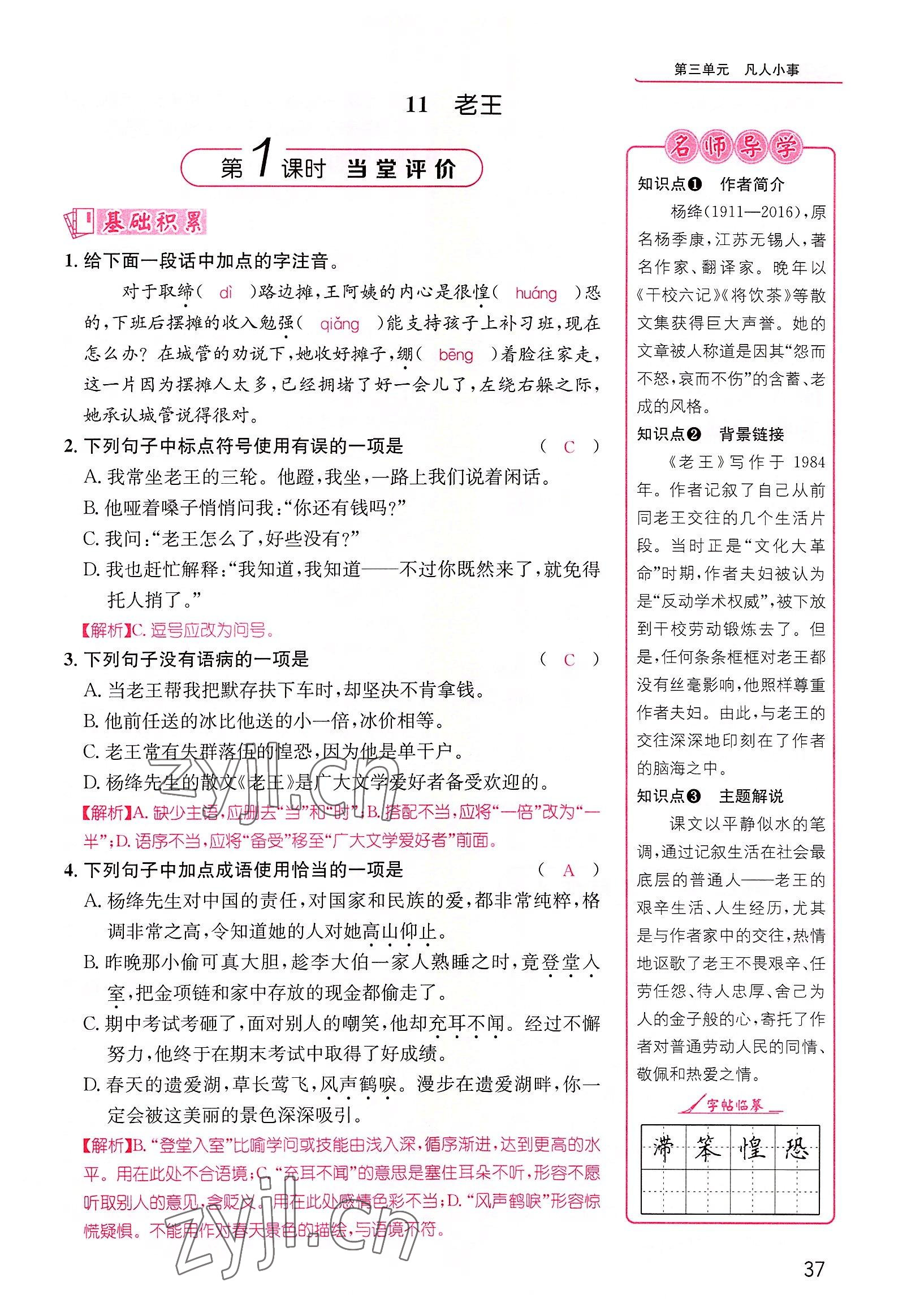 注:目前有些书本章节名称可能整理的还不是很完善,但都是按照顺序排列的,请同学们按照顺序仔细查找。练习册 2022年精英新课堂七年级语文下册人教版黄冈孝感咸宁专版 答案主要是用来给同学们做完题方便对答案用的,请勿直接抄袭。