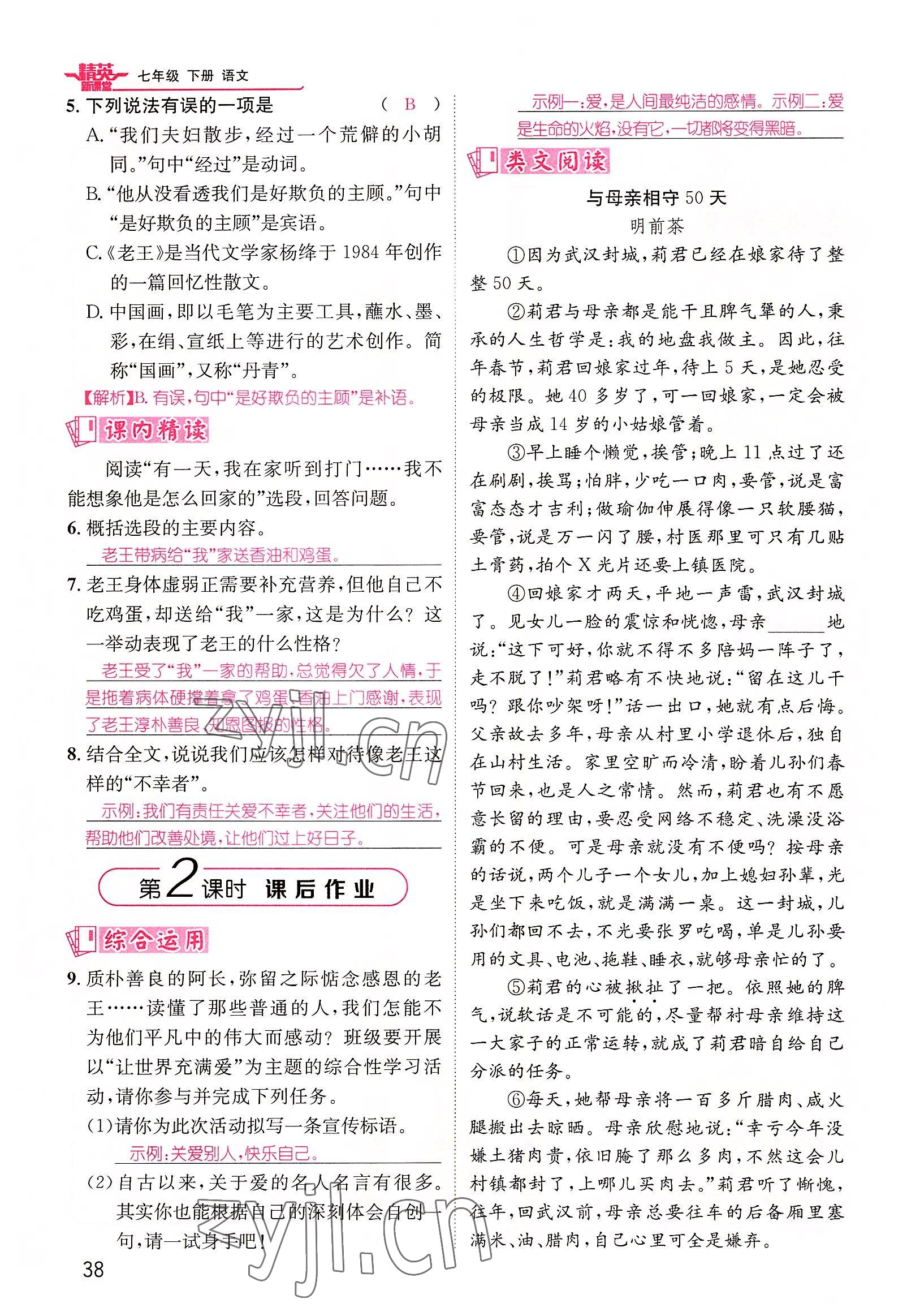 2022年精英新课堂七年级语文下册人教版黄冈孝感咸宁专版