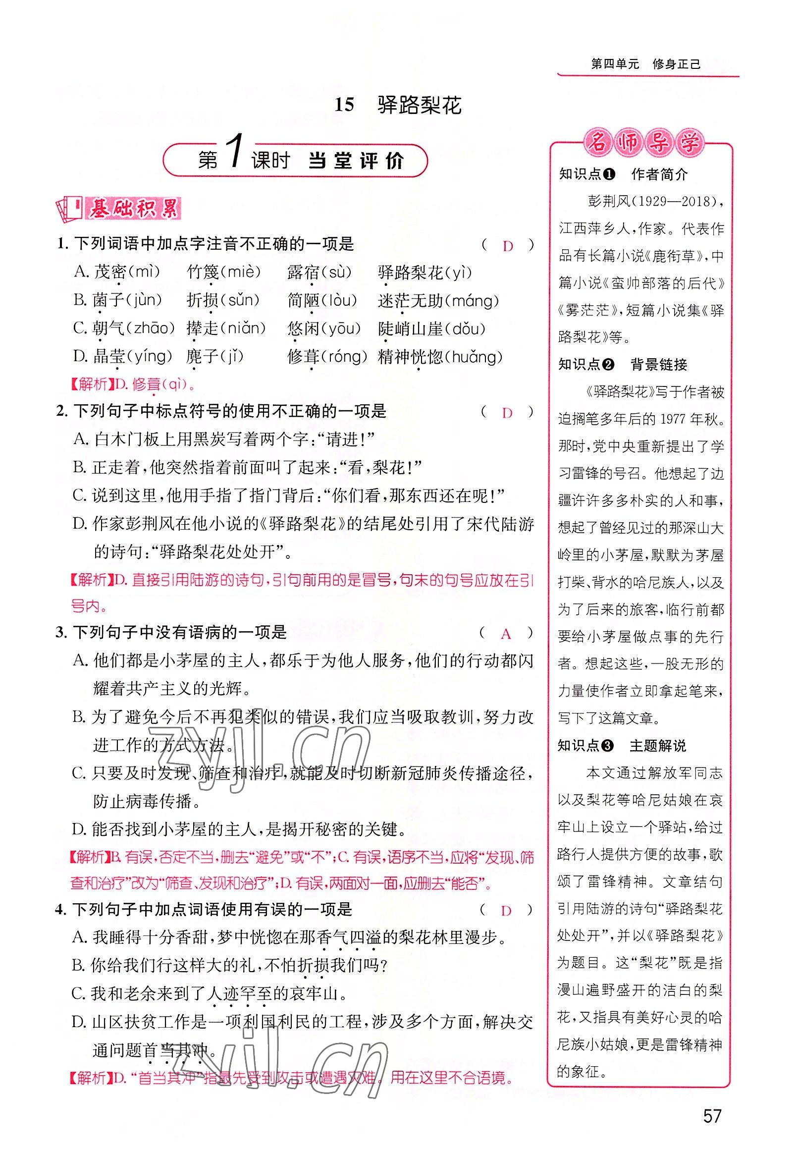 注:目前有些书本章节名称可能整理的还不是很完善,但都是按照顺序排列的,请同学们按照顺序仔细查找。练习册 2022年精英新课堂七年级语文下册人教版黄冈孝感咸宁专版 答案主要是用来给同学们做完题方便对答案用的,请勿直接抄袭。