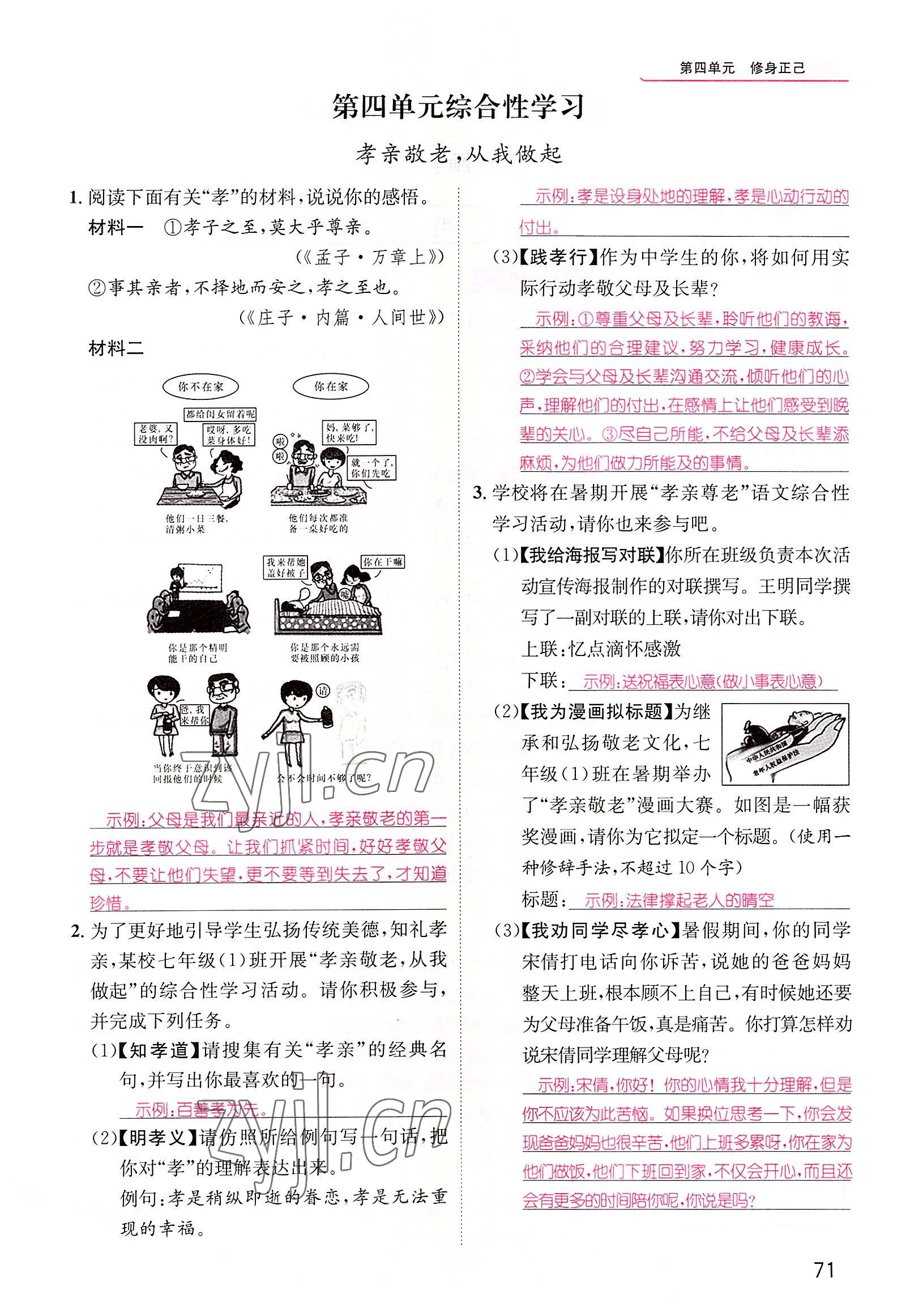 2022年精英新课堂七年级语文下册人教版黄冈孝感咸宁专版