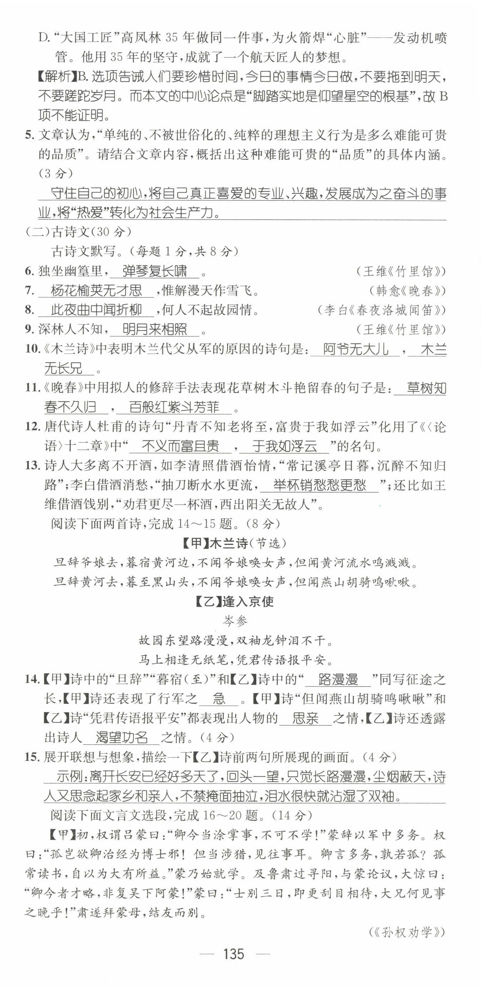 注:目前有些书本章节名称可能整理的还不是很完善,但都是按照顺序排列的,请同学们按照顺序仔细查找。练习册 2022年精英新课堂七年级语文下册人教版黄冈孝感咸宁专版 答案主要是用来给同学们做完题方便对答案用的,请勿直接抄袭。