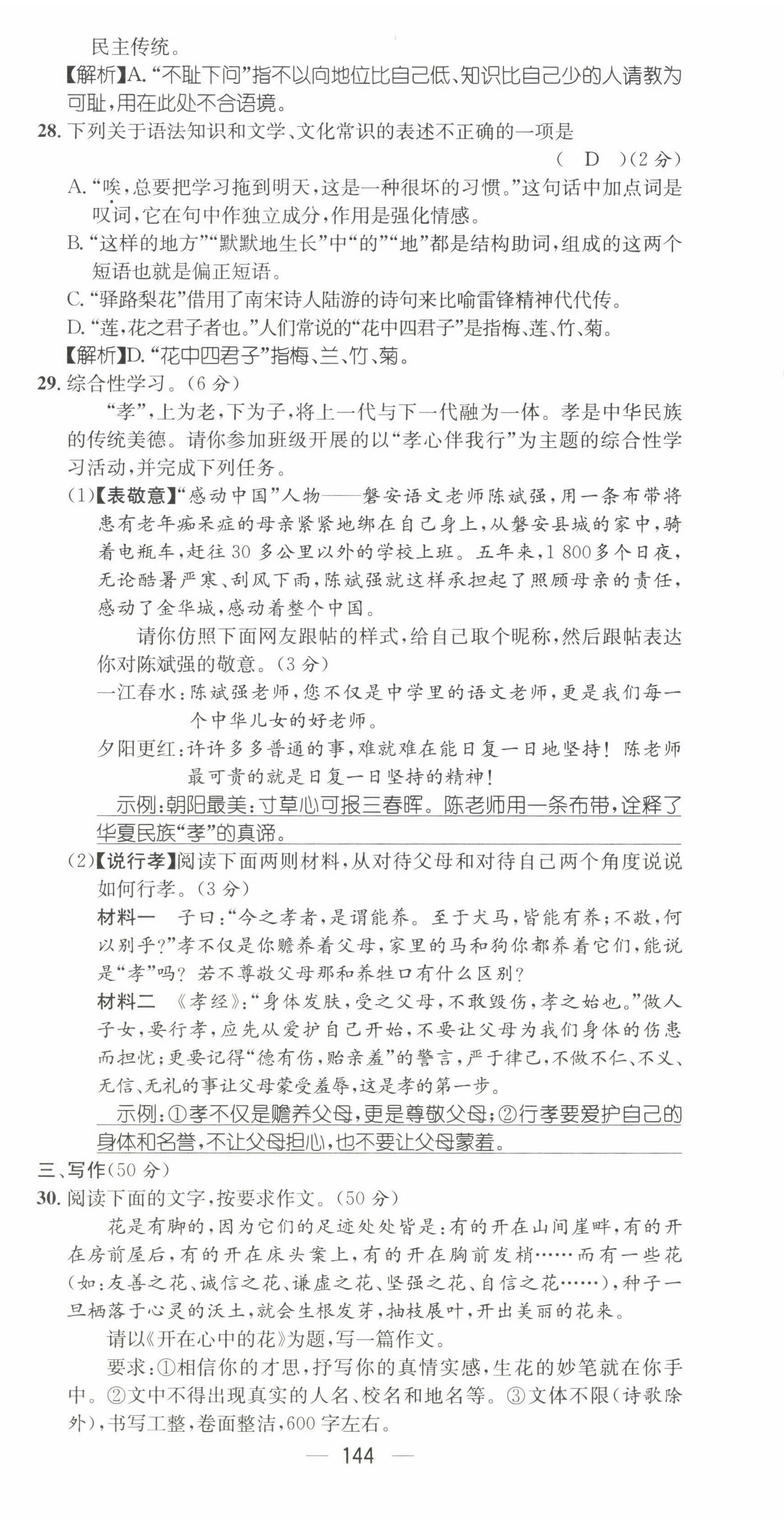 注:目前有些书本章节名称可能整理的还不是很完善,但都是按照顺序排列的,请同学们按照顺序仔细查找。练习册 2022年精英新课堂七年级语文下册人教版黄冈孝感咸宁专版 答案主要是用来给同学们做完题方便对答案用的,请勿直接抄袭。