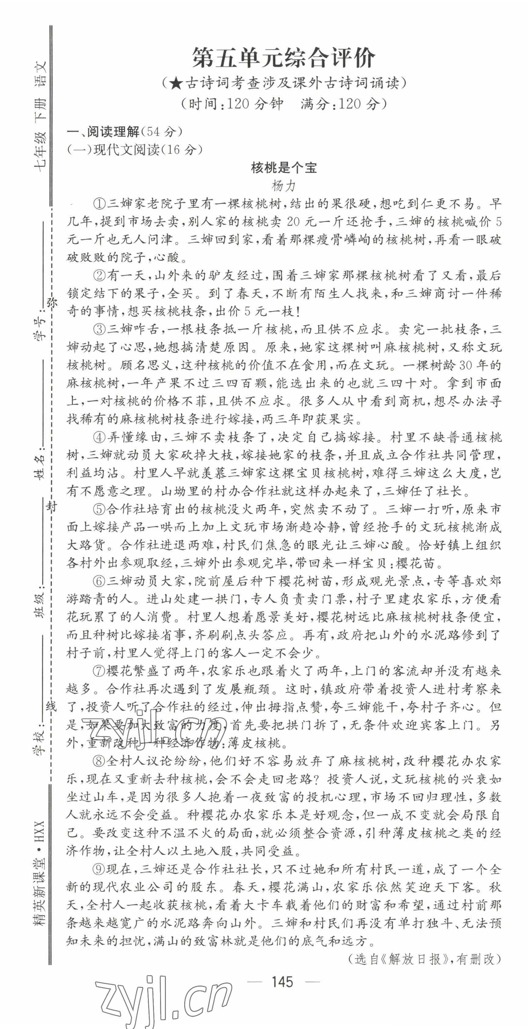 2022年精英新课堂七年级语文下册人教版黄冈孝感咸宁专版