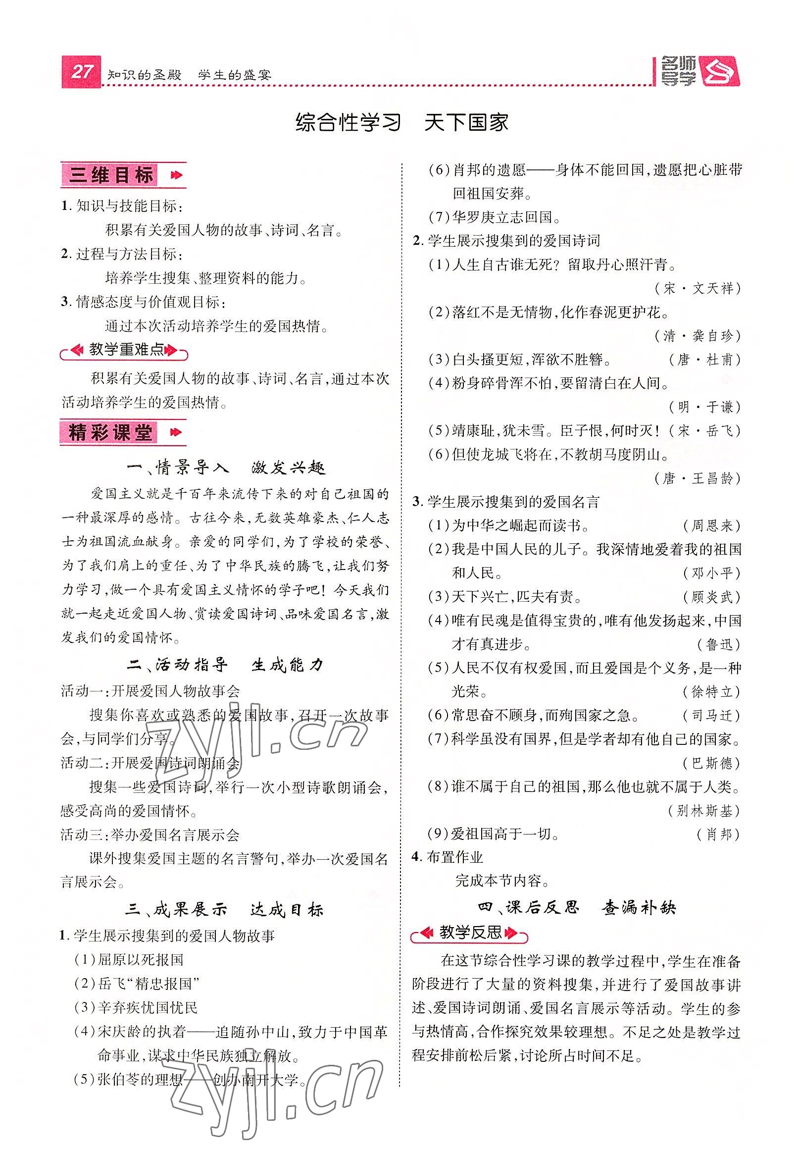 注:目前有些书本章节名称可能整理的还不是很完善,但都是按照顺序排列的,请同学们按照顺序仔细查找。练习册 2022年精英新课堂七年级语文下册人教版黄冈孝感咸宁专版 答案主要是用来给同学们做完题方便对答案用的,请勿直接抄袭。