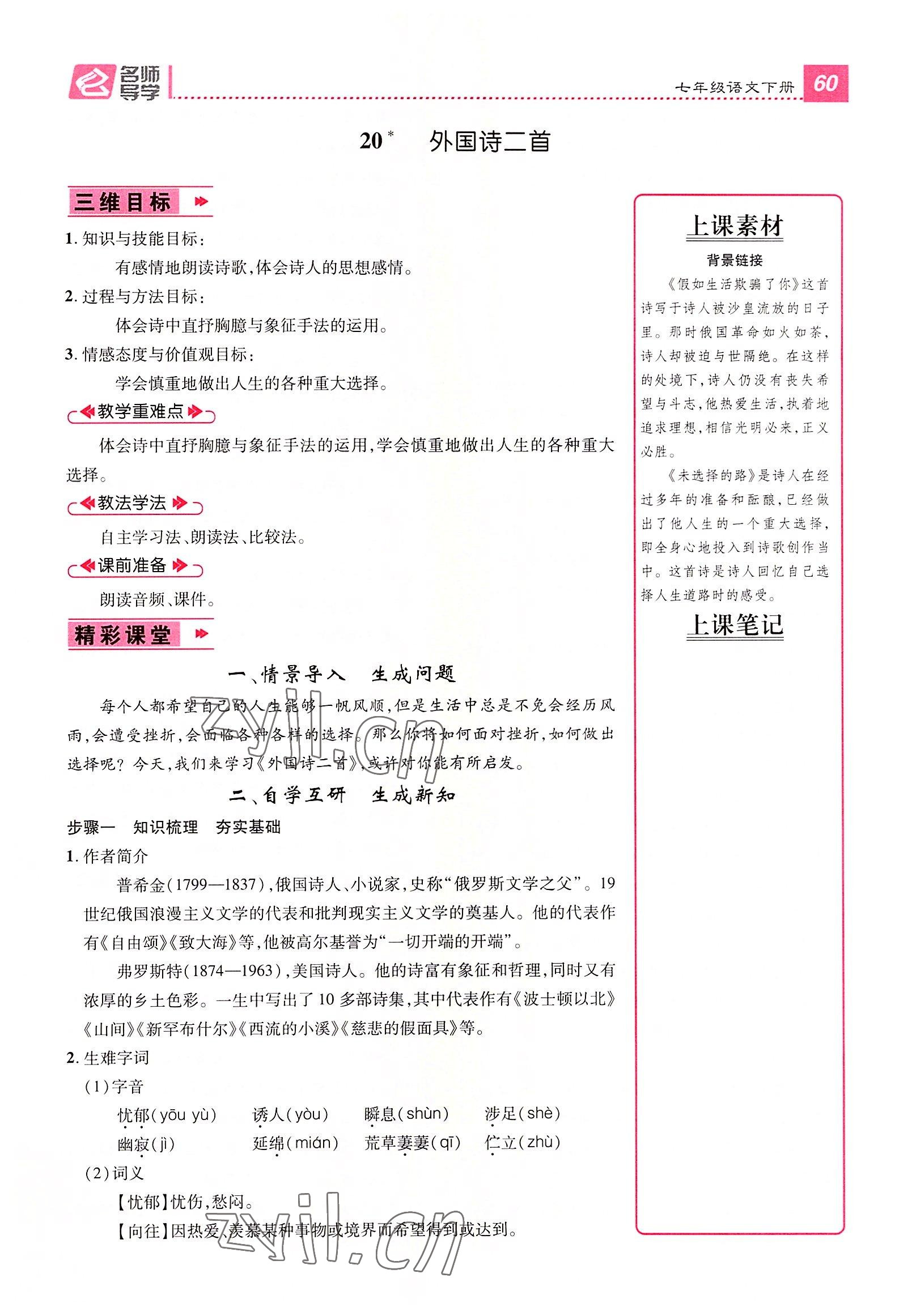 2022年精英新课堂七年级语文下册人教版黄冈孝感咸宁专版