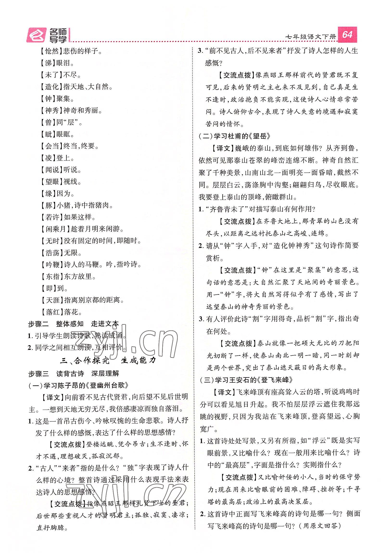注:目前有些书本章节名称可能整理的还不是很完善,但都是按照顺序排列的,请同学们按照顺序仔细查找。练习册 2022年精英新课堂七年级语文下册人教版黄冈孝感咸宁专版 答案主要是用来给同学们做完题方便对答案用的,请勿直接抄袭。