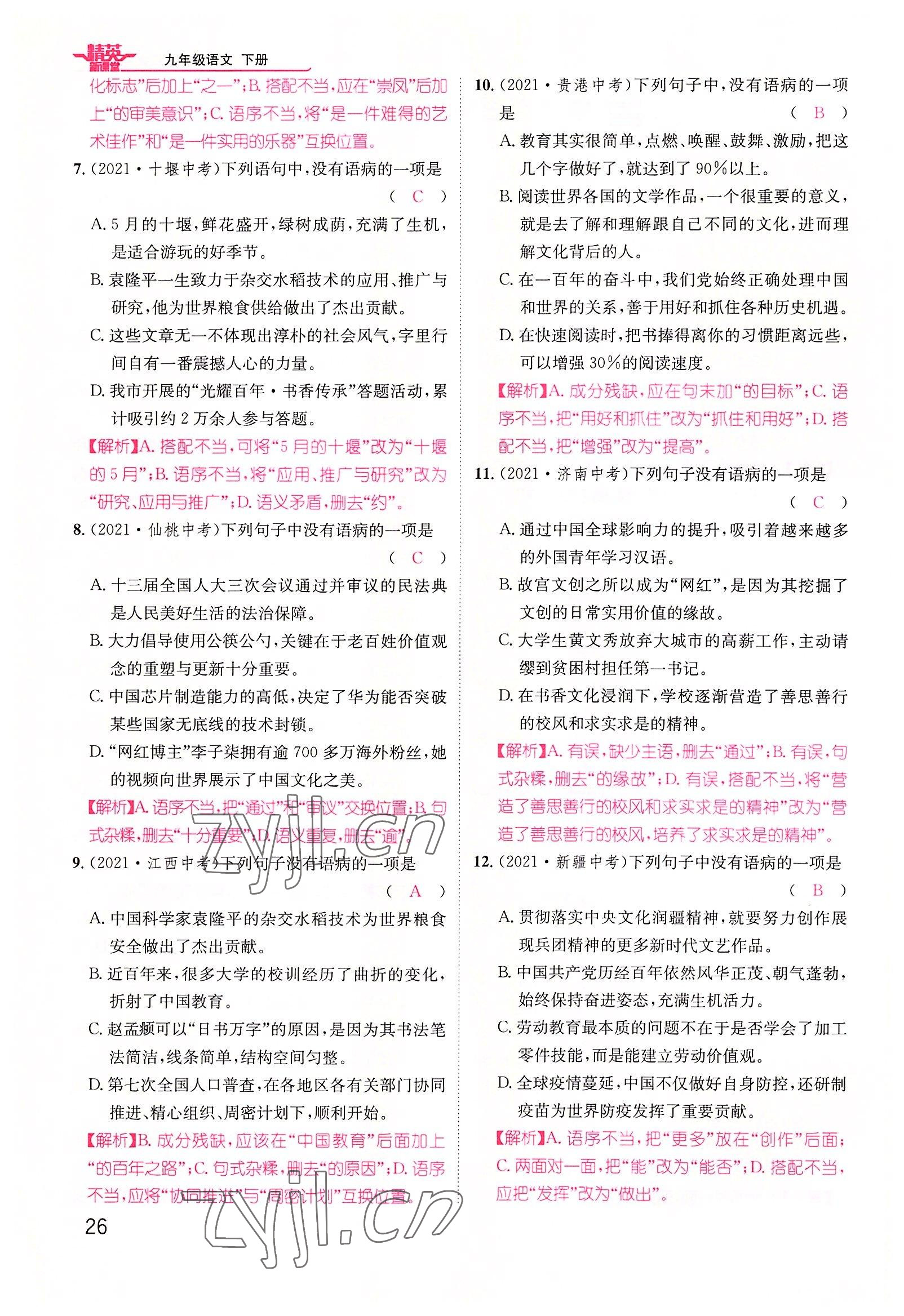 《2022年精英新课堂九年级语文下册人教版黄冈孝感咸宁专版》
