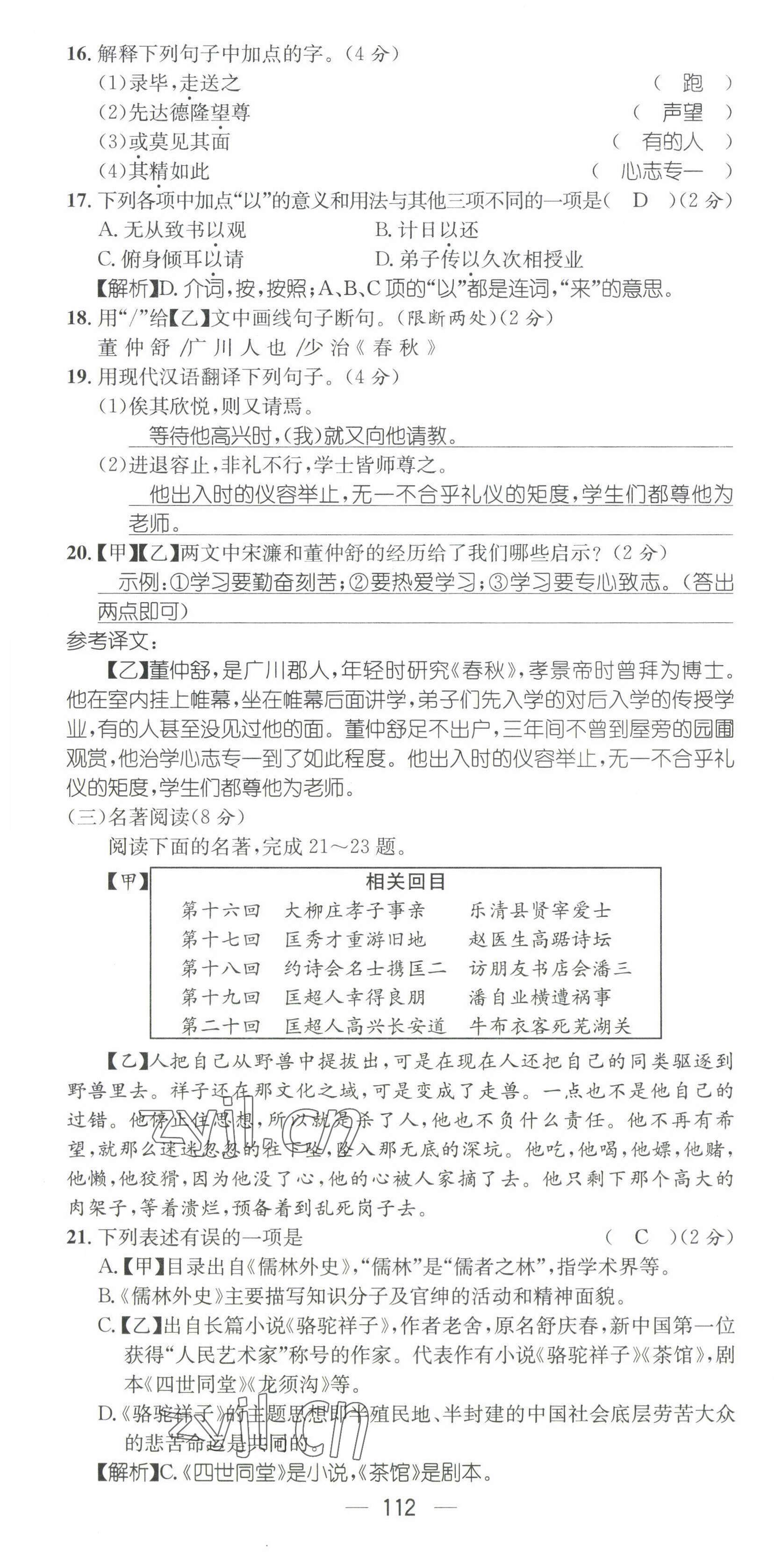 注:目前有些书本章节名称可能整理的还不是很完善,但都是按照顺序排列的,请同学们按照顺序仔细查找。练习册 2022年精英新课堂九年级语文下册人教版黄冈孝感咸宁专版 答案主要是用来给同学们做完题方便对答案用的,请勿直接抄袭。