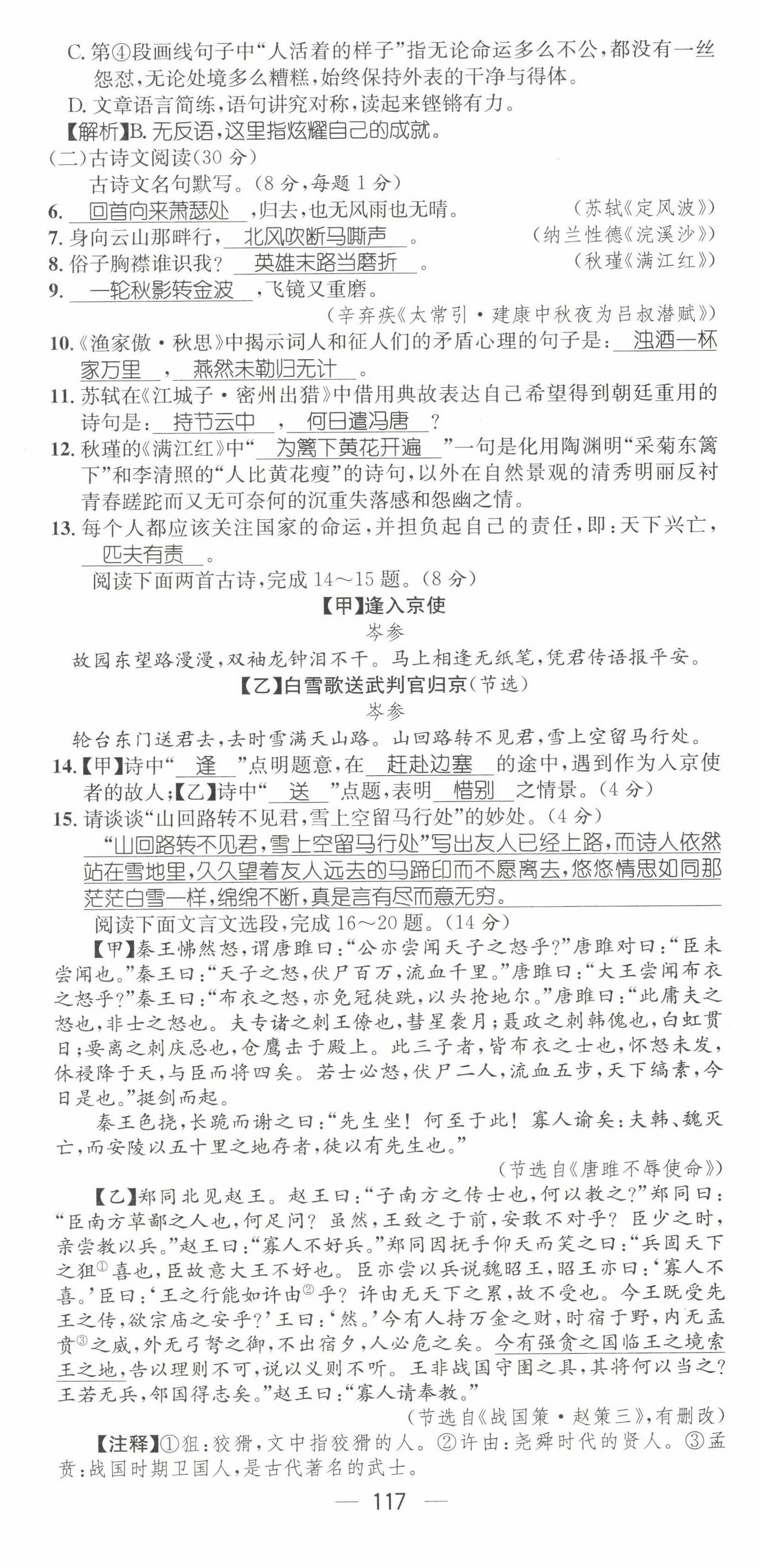 2022年精英新课堂九年级语文下册人教版黄冈孝感咸宁专版
