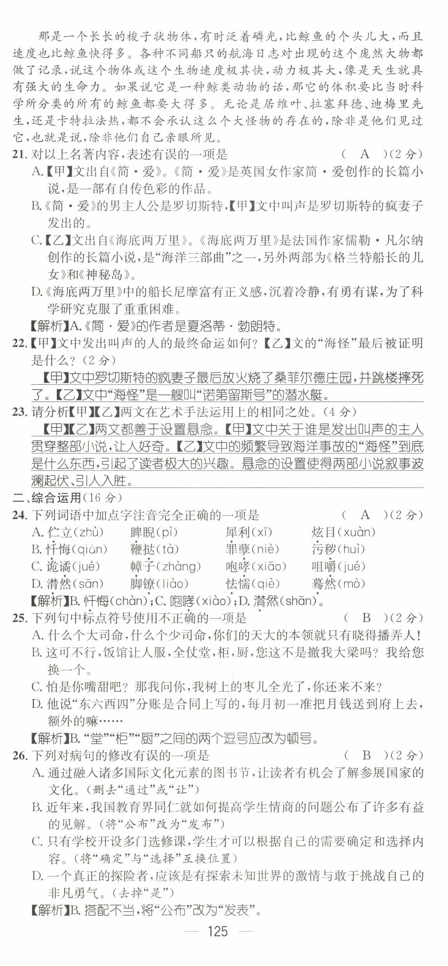 注:目前有些书本章节名称可能整理的还不是很完善,但都是按照顺序排列的,请同学们按照顺序仔细查找。练习册 2022年精英新课堂九年级语文下册人教版黄冈孝感咸宁专版 答案主要是用来给同学们做完题方便对答案用的,请勿直接抄袭。