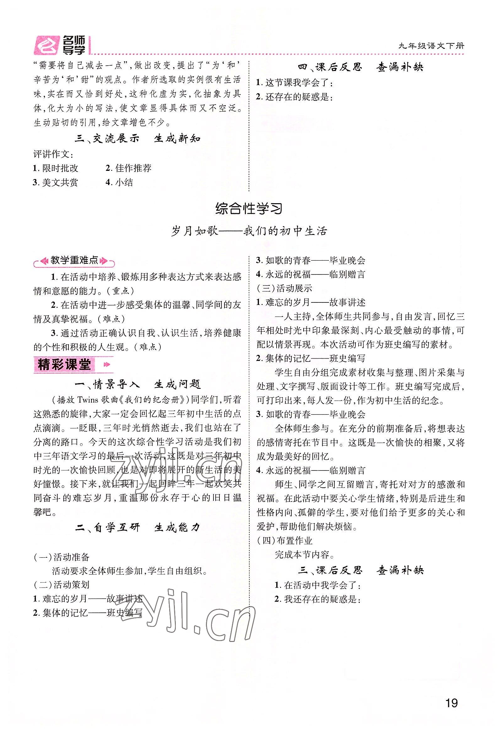 2022年精英新课堂九年级语文下册人教版黄冈孝感咸宁专版