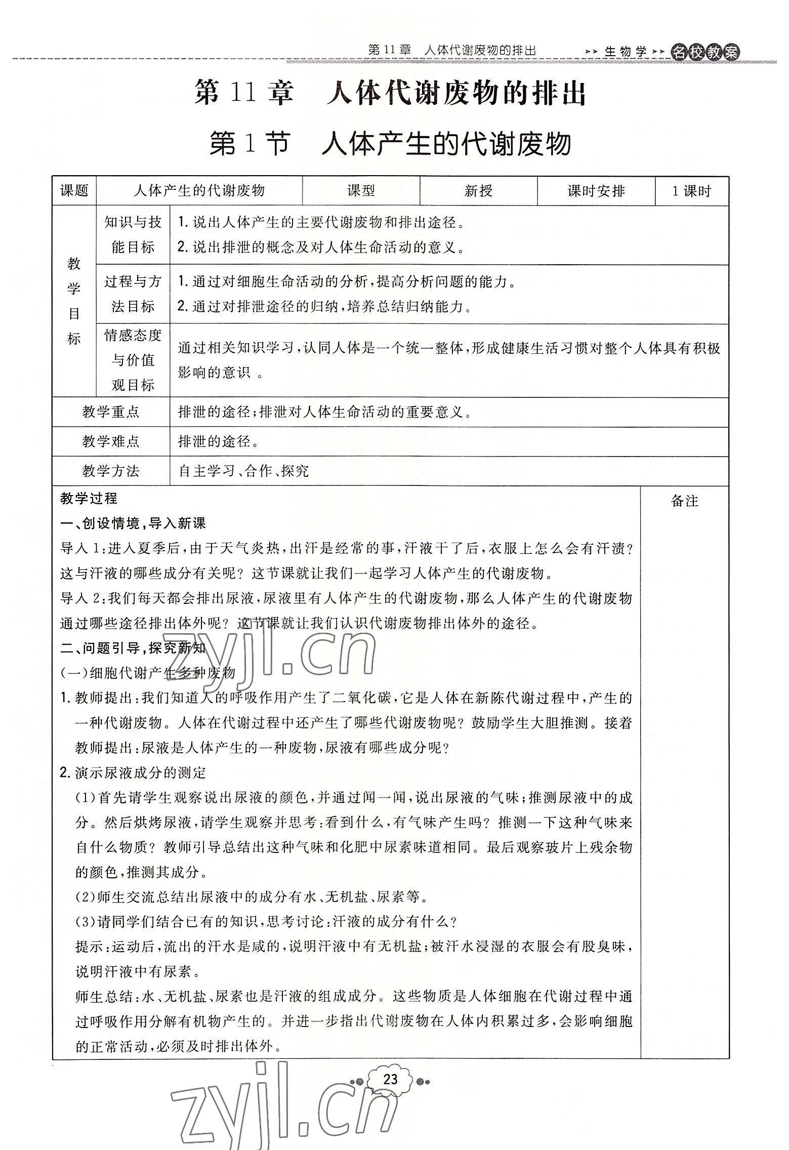 2022年初中同步学习导与练导学探究案七年级生物下册北师大版云南专版