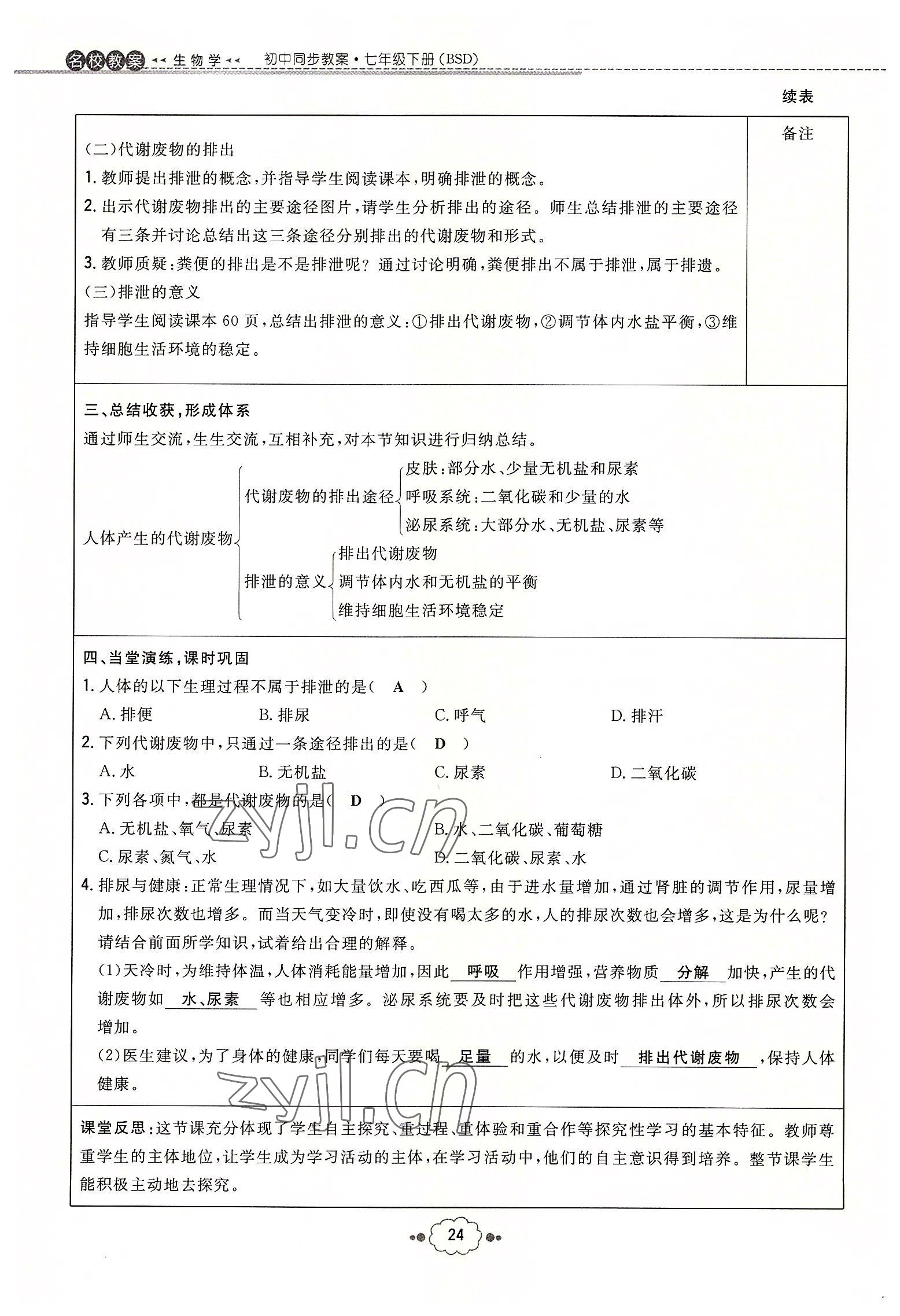 2022年初中同步学习导与练导学探究案七年级生物下册北师大版云南专版