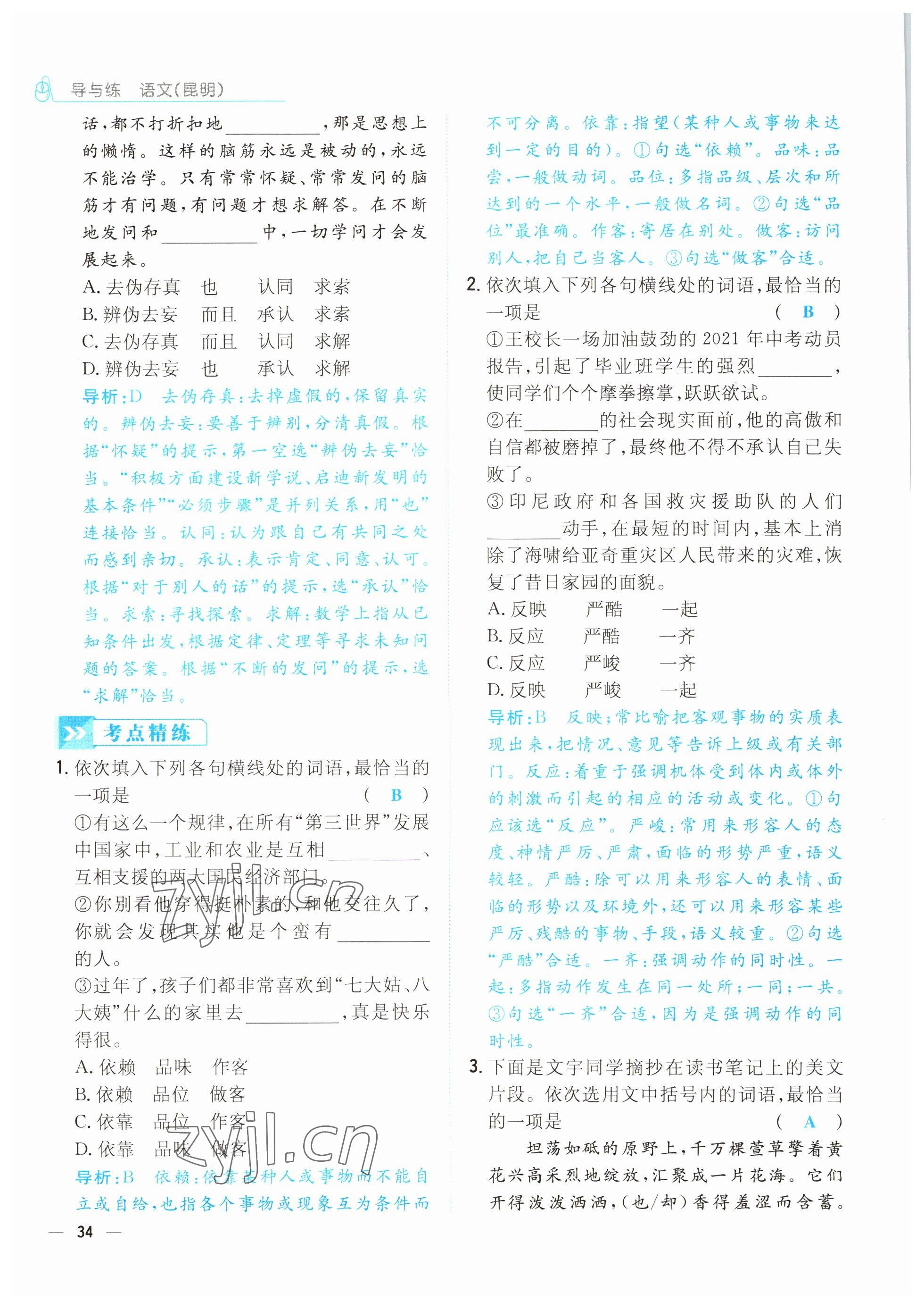 注:目前有些书本章节名称可能整理的还不是很完善,但都是按照顺序排列的,请同学们按照顺序仔细查找。练习册 2022年云南省初中学业水平考试导与练语文昆明专版 答案主要是用来给同学们做完题方便对答案用的,请勿直接抄袭。