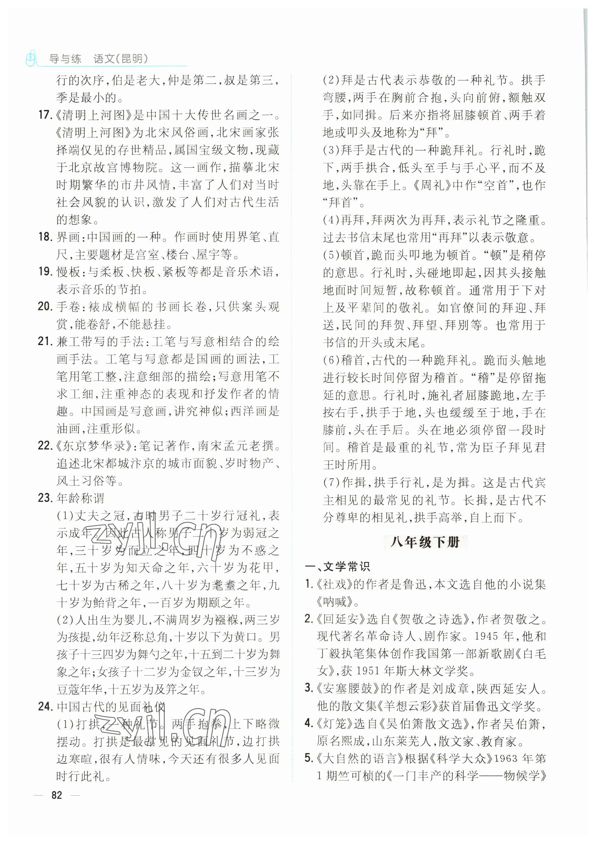2022年云南省初中学业水平考试导与练语文昆明专版