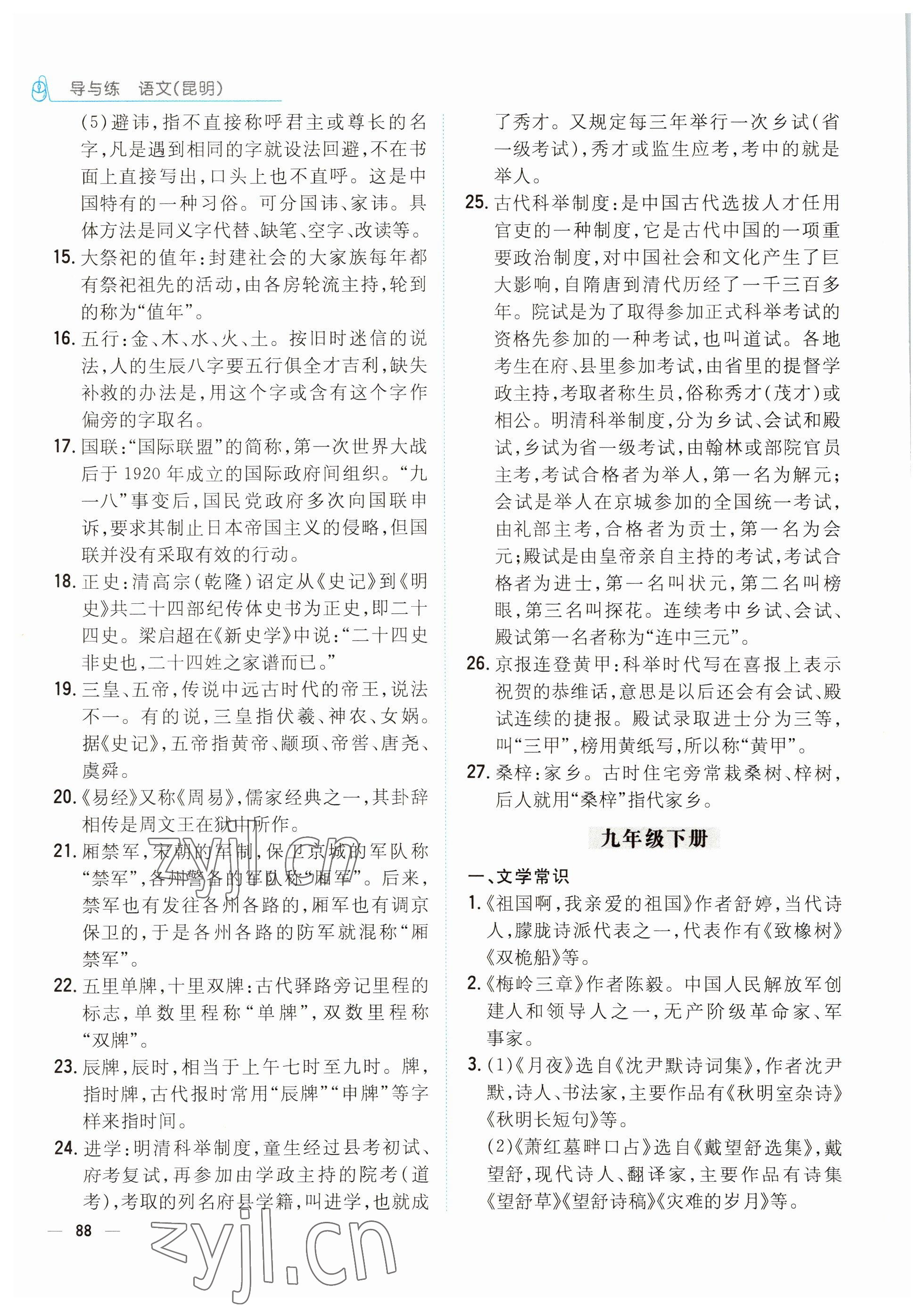 2022年云南省初中学业水平考试导与练语文昆明专版