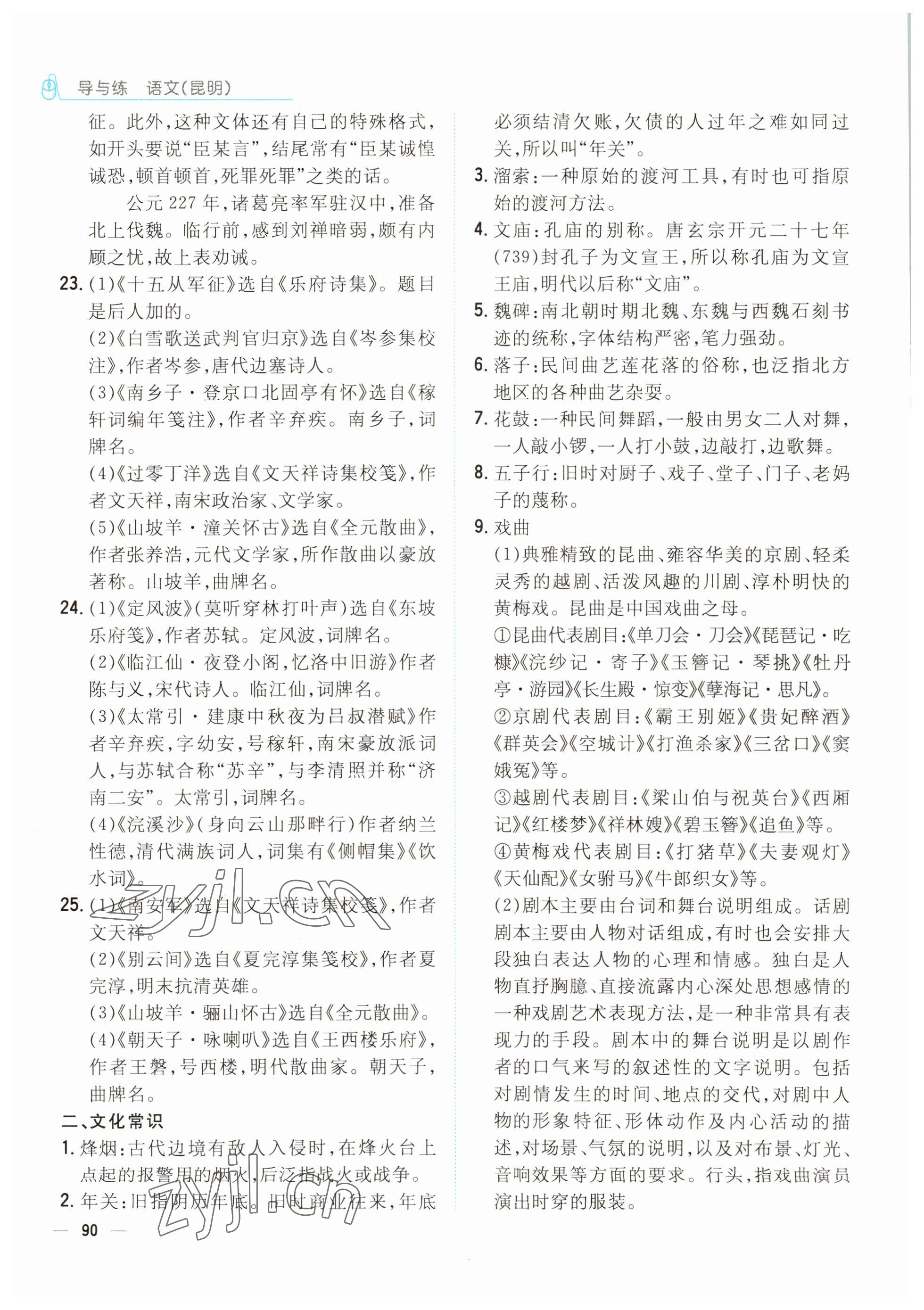 2022年云南省初中学业水平考试导与练语文昆明专版