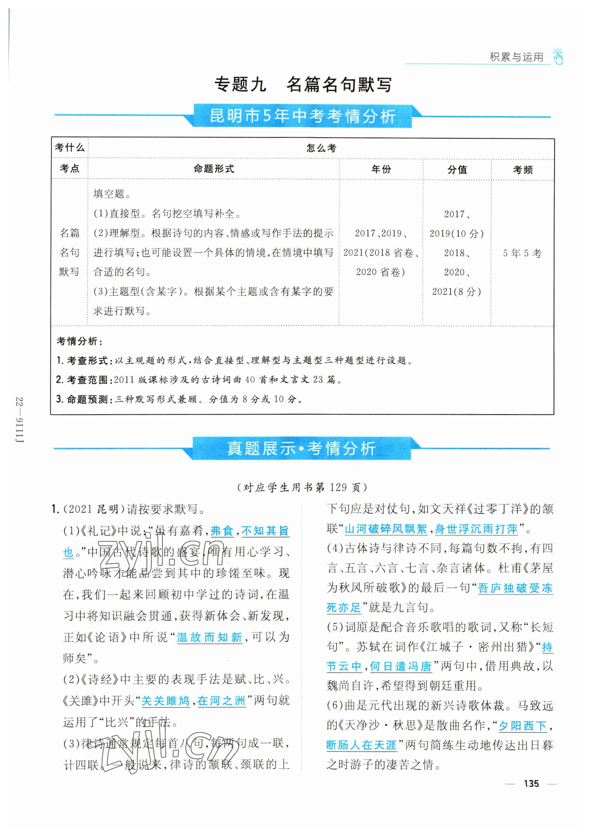 2022年云南省初中学业水平考试导与练语文昆明专版