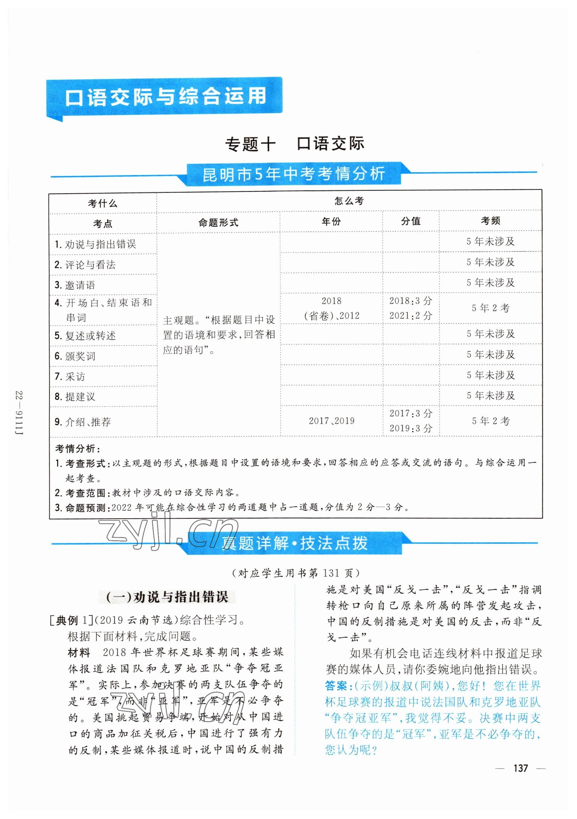 2022年云南省初中学业水平考试导与练语文昆明专版
