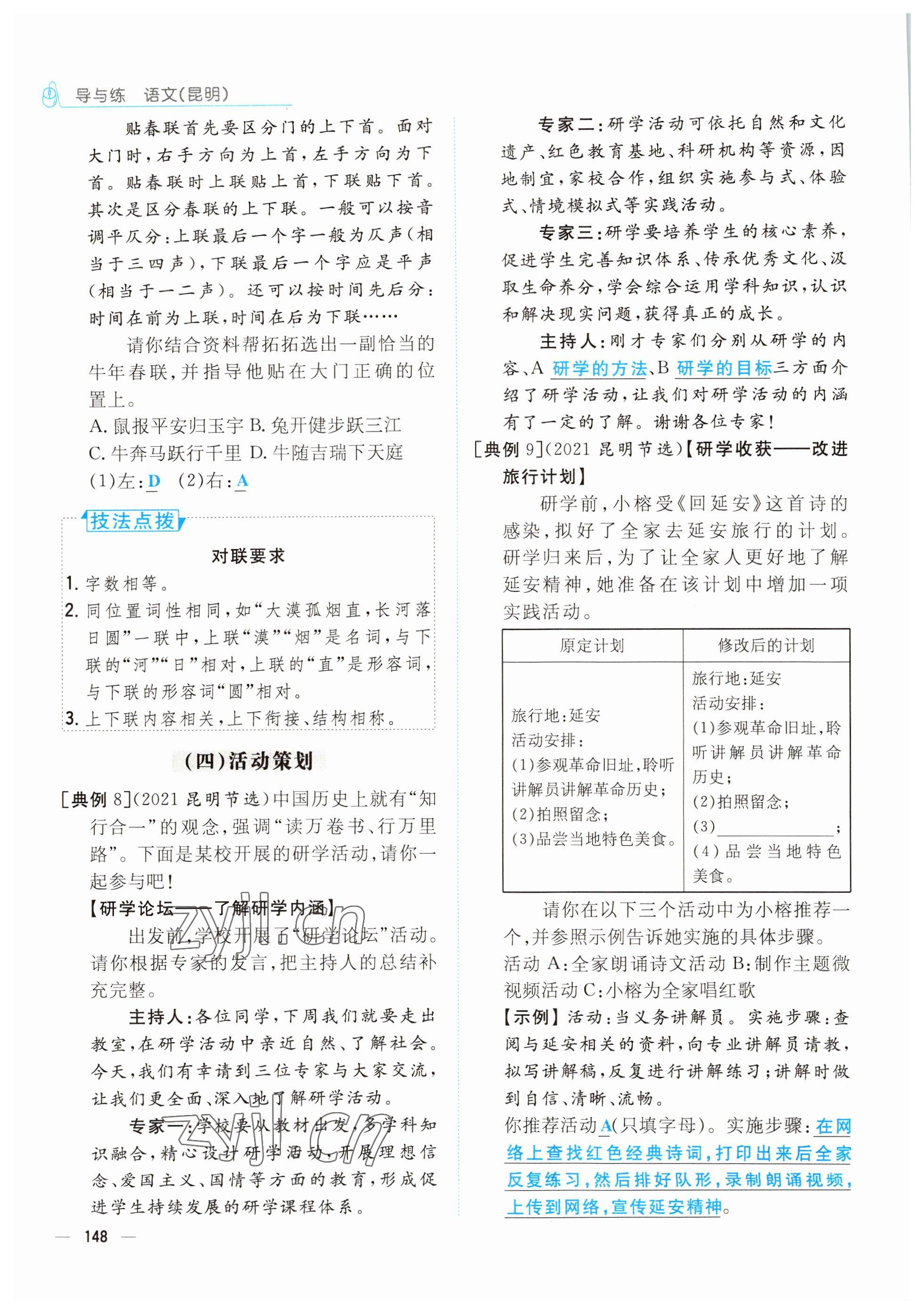 2022年云南省初中学业水平考试导与练语文昆明专版