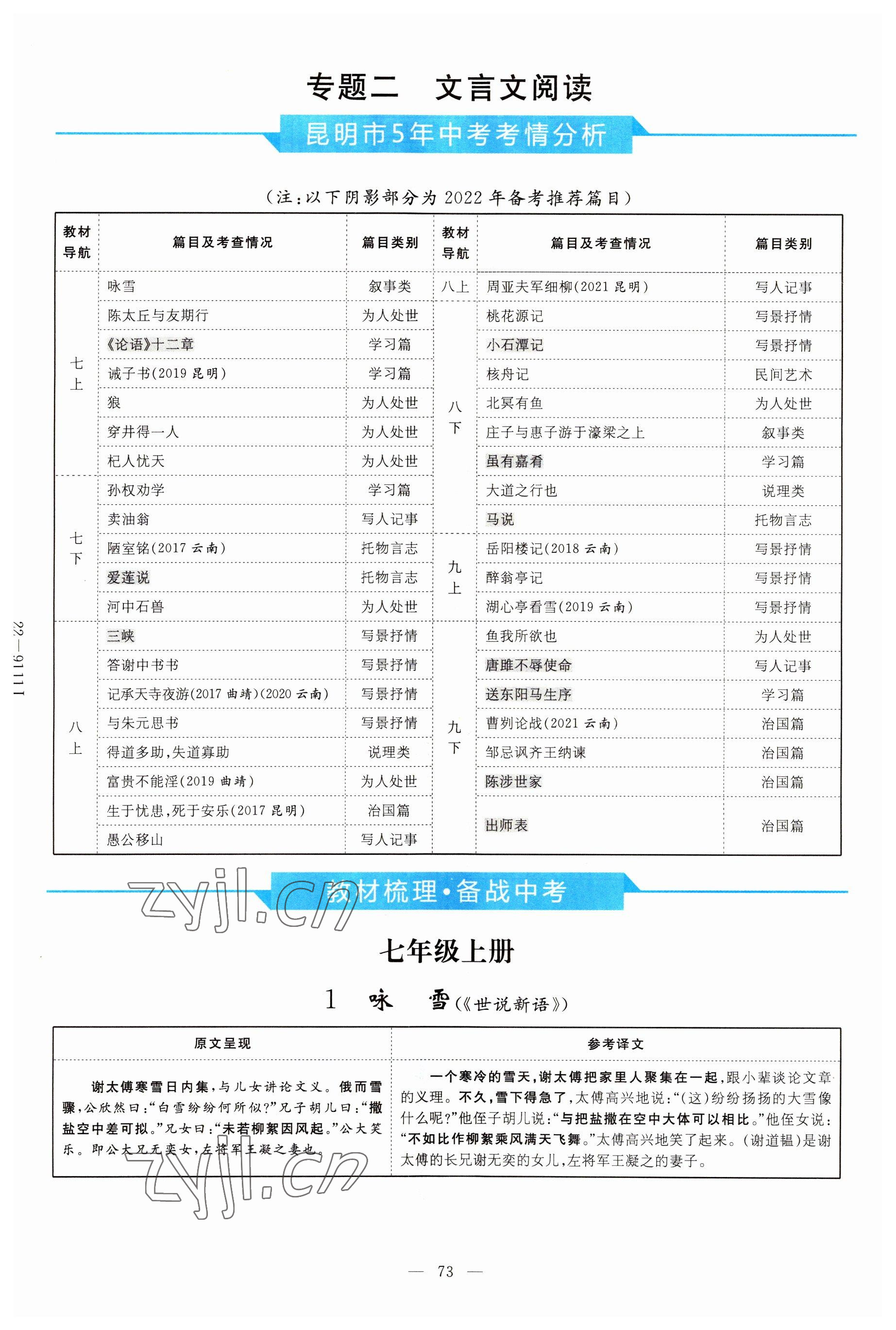 2022年云南省初中学业水平考试导与练语文昆明专版