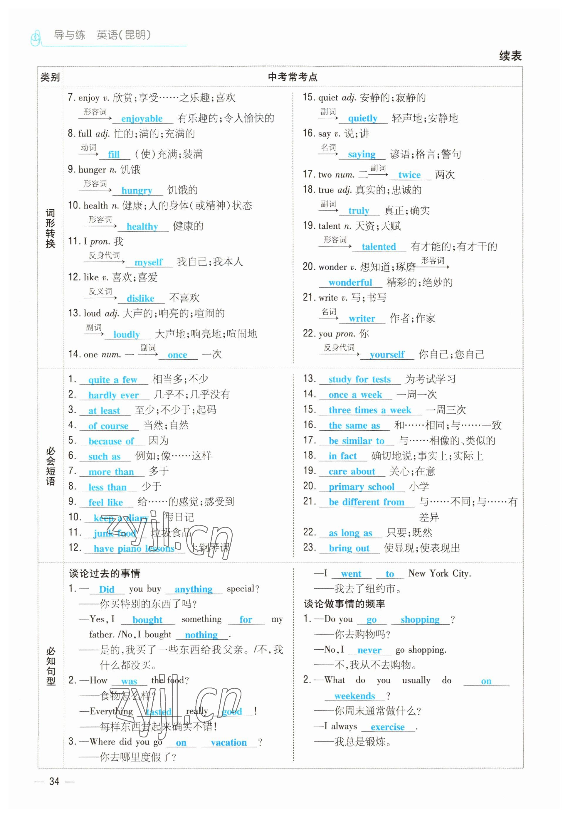 2022年云南省初中学业水平考试导与练英语昆明专版
