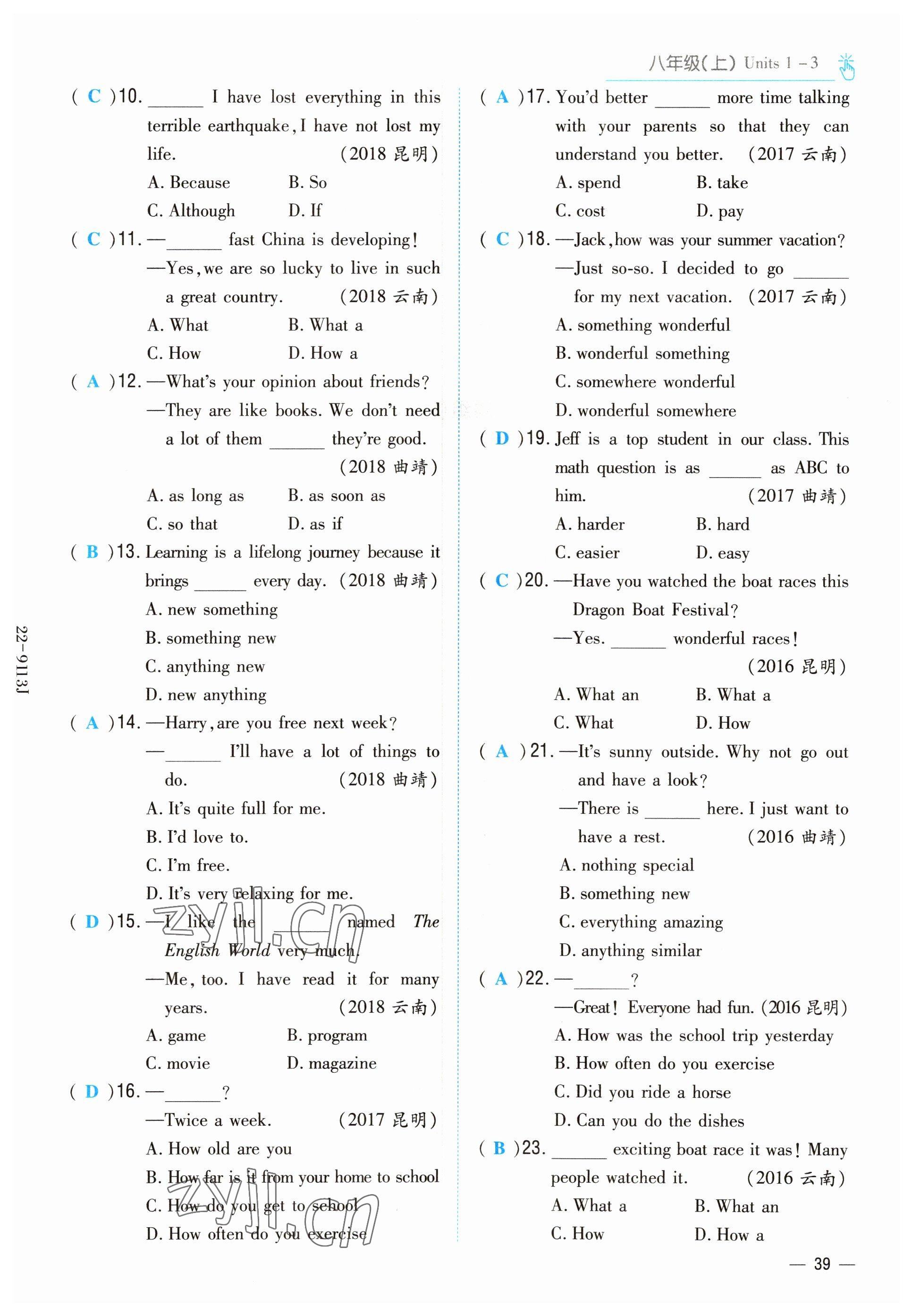 注:目前有些书本章节名称可能整理的还不是很完善,但都是按照顺序排列的,请同学们按照顺序仔细查找。练习册 2022年云南省初中学业水平考试导与练英语昆明专版 答案主要是用来给同学们做完题方便对答案用的,请勿直接抄袭。