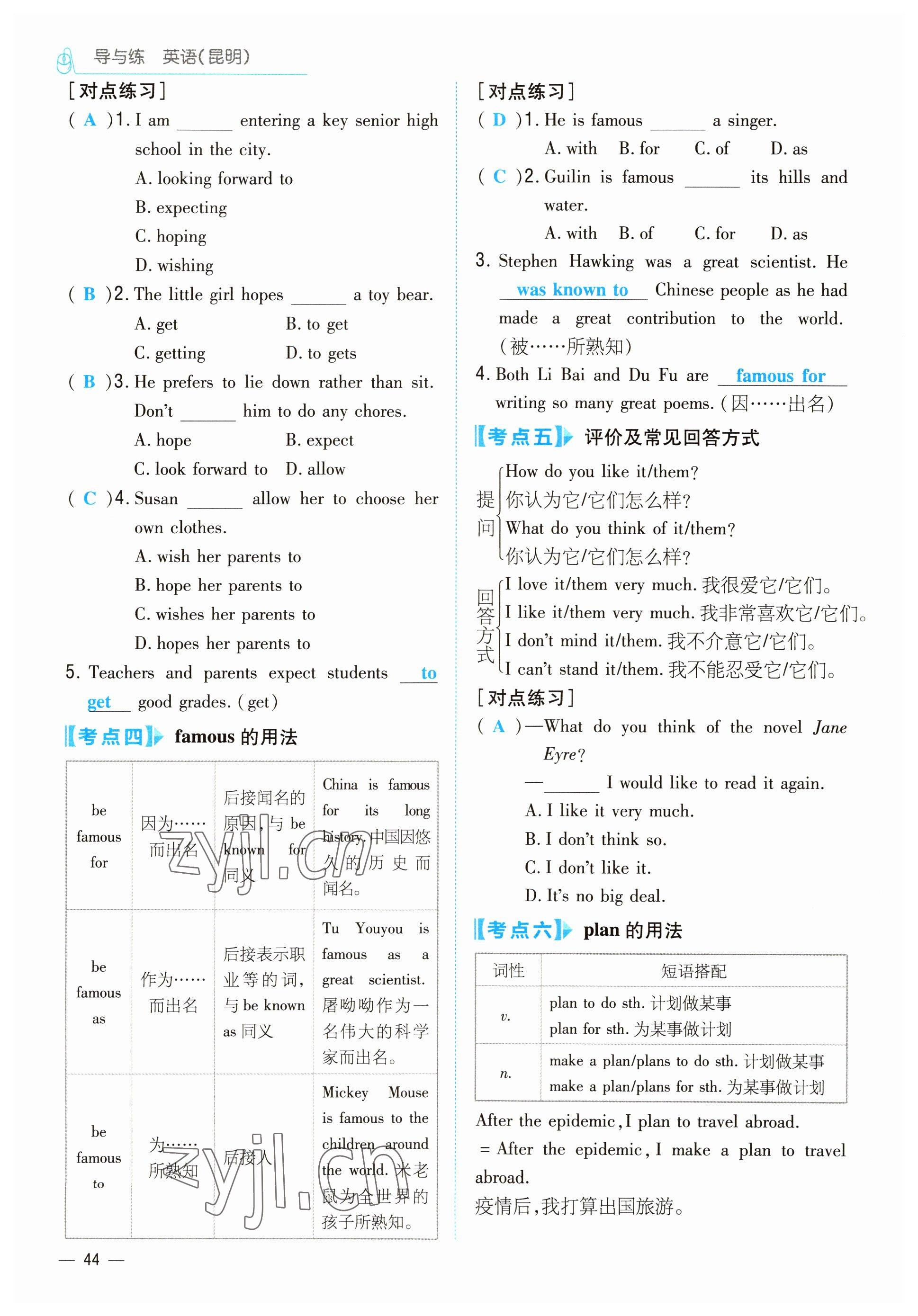 注:目前有些书本章节名称可能整理的还不是很完善,但都是按照顺序排列的,请同学们按照顺序仔细查找。练习册 2022年云南省初中学业水平考试导与练英语昆明专版 答案主要是用来给同学们做完题方便对答案用的,请勿直接抄袭。