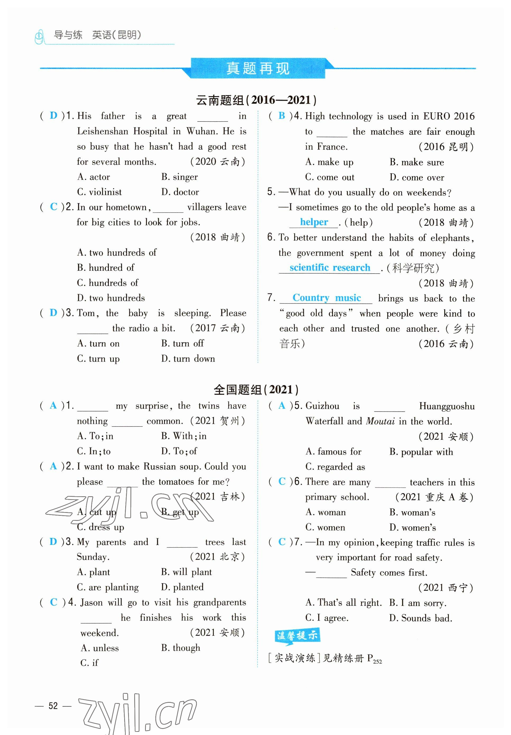 《2022年云南省初中学业水平考试导与练英语昆明专版》