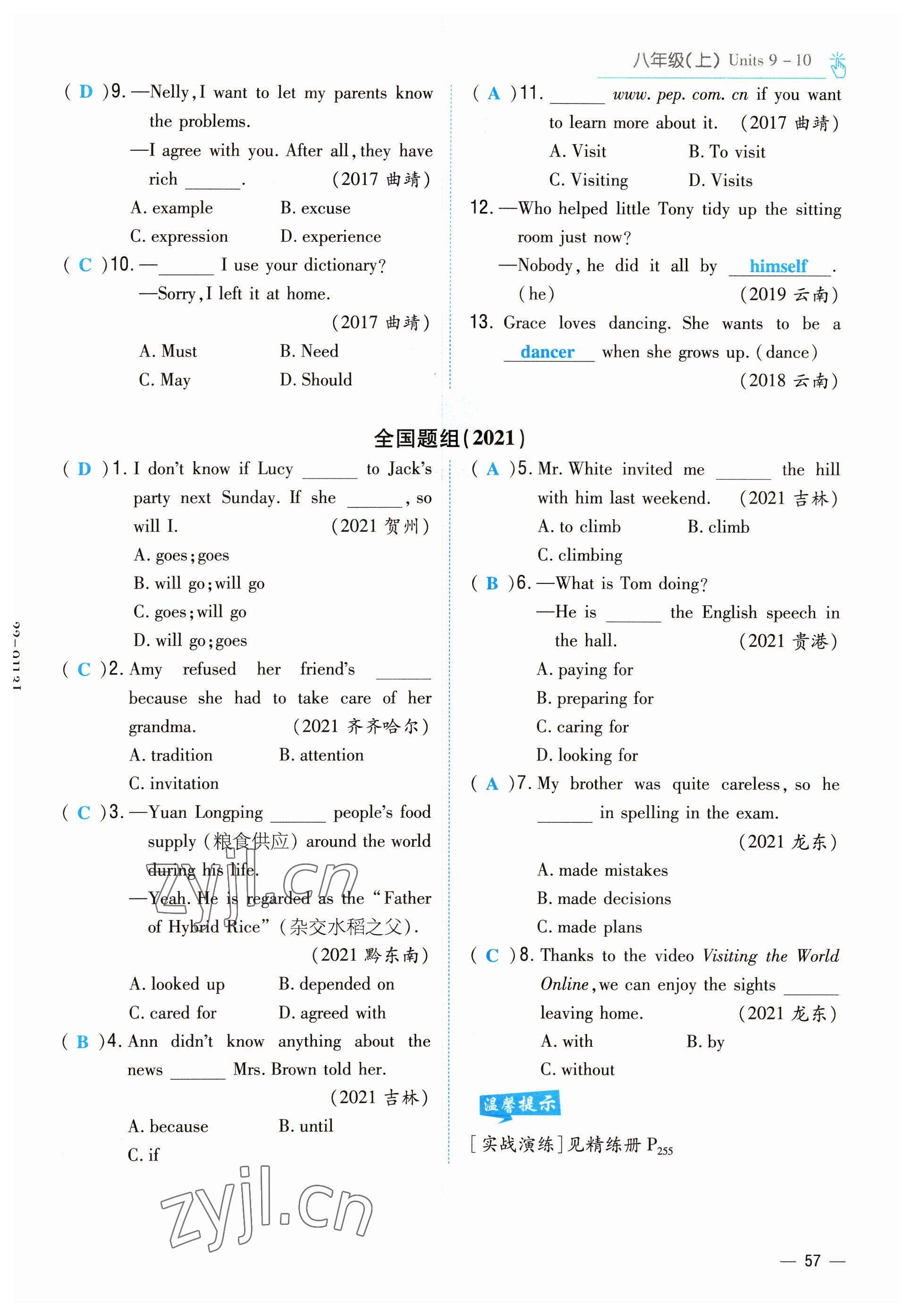 注:目前有些书本章节名称可能整理的还不是很完善,但都是按照顺序排列的,请同学们按照顺序仔细查找。练习册 2022年云南省初中学业水平考试导与练英语昆明专版 答案主要是用来给同学们做完题方便对答案用的,请勿直接抄袭。