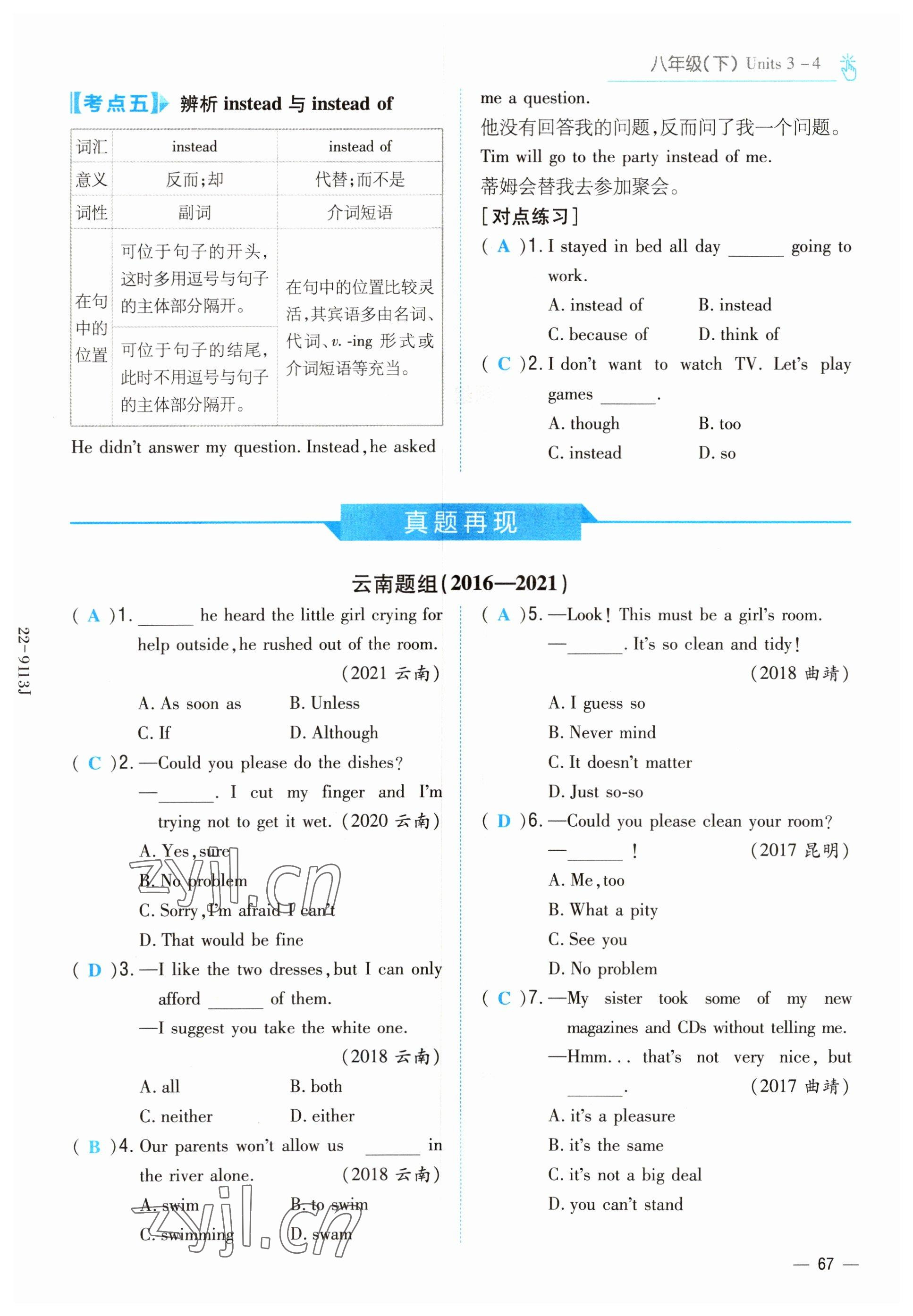 注:目前有些书本章节名称可能整理的还不是很完善,但都是按照顺序排列的,请同学们按照顺序仔细查找。练习册 2022年云南省初中学业水平考试导与练英语昆明专版 答案主要是用来给同学们做完题方便对答案用的,请勿直接抄袭。