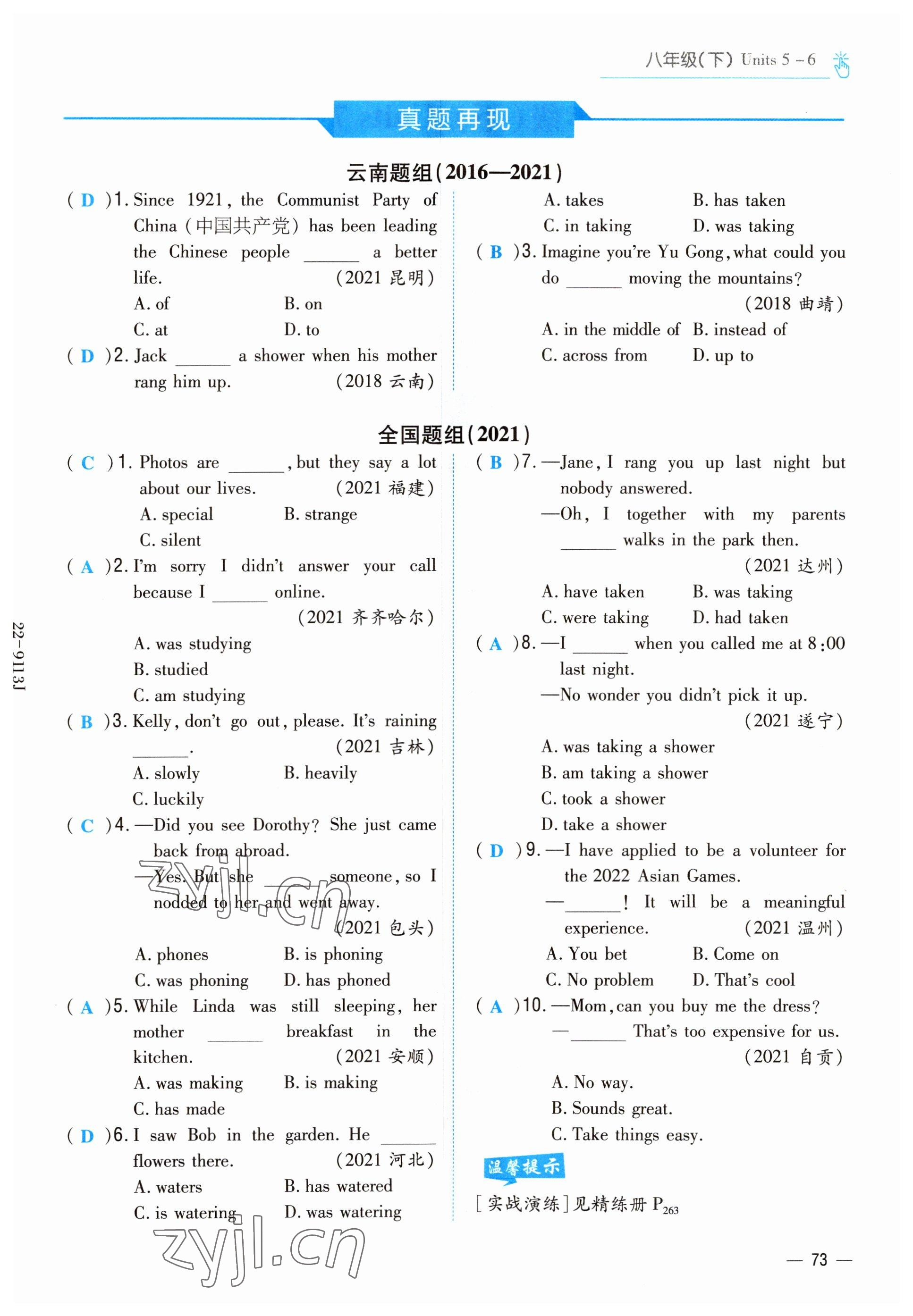 注:目前有些书本章节名称可能整理的还不是很完善,但都是按照顺序排列的,请同学们按照顺序仔细查找。练习册 2022年云南省初中学业水平考试导与练英语昆明专版 答案主要是用来给同学们做完题方便对答案用的,请勿直接抄袭。