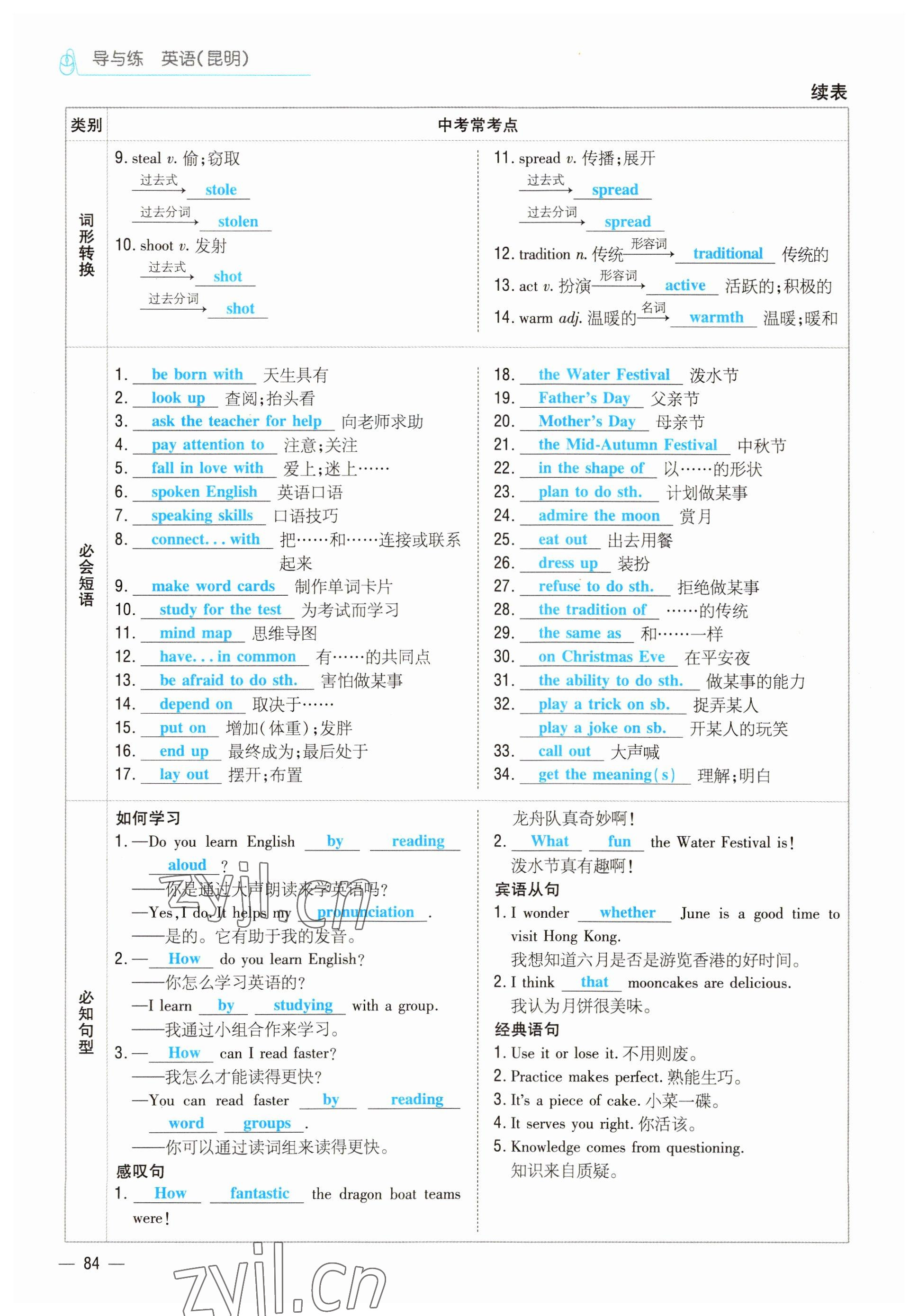 2022年云南省初中学业水平考试导与练英语昆明专版