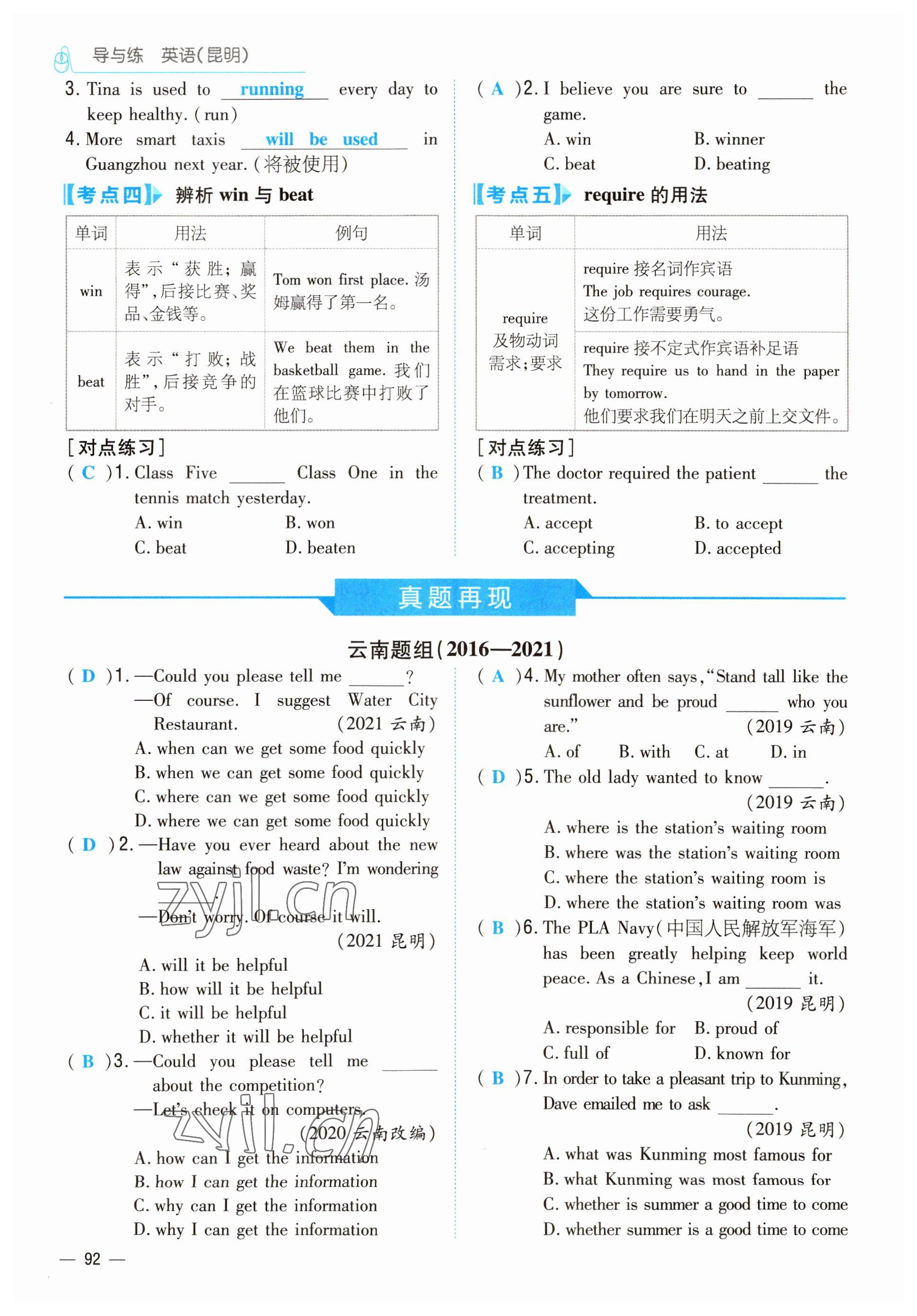 2022年云南省初中学业水平考试导与练英语昆明专版