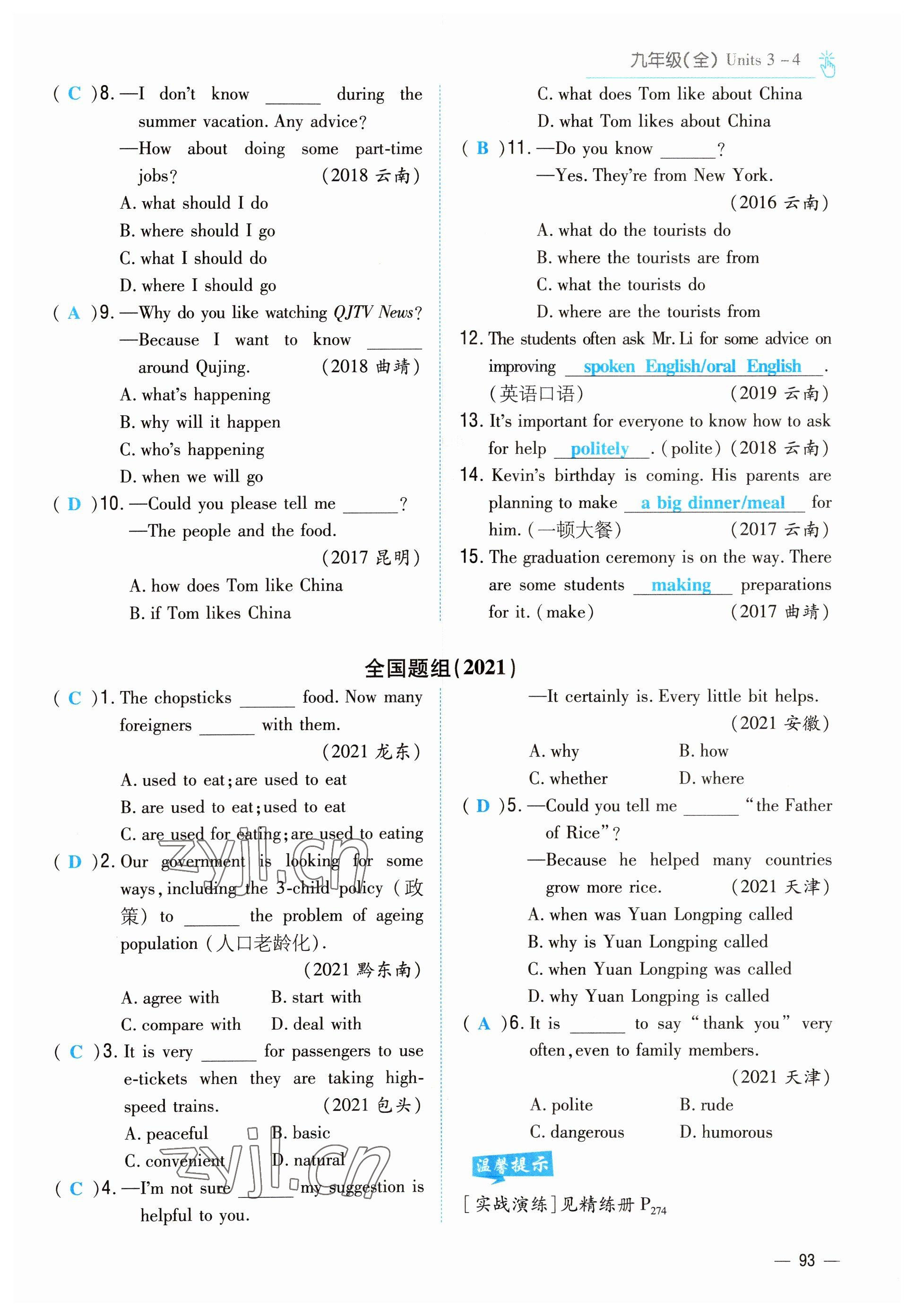 2022年云南省初中学业水平考试导与练英语昆明专版