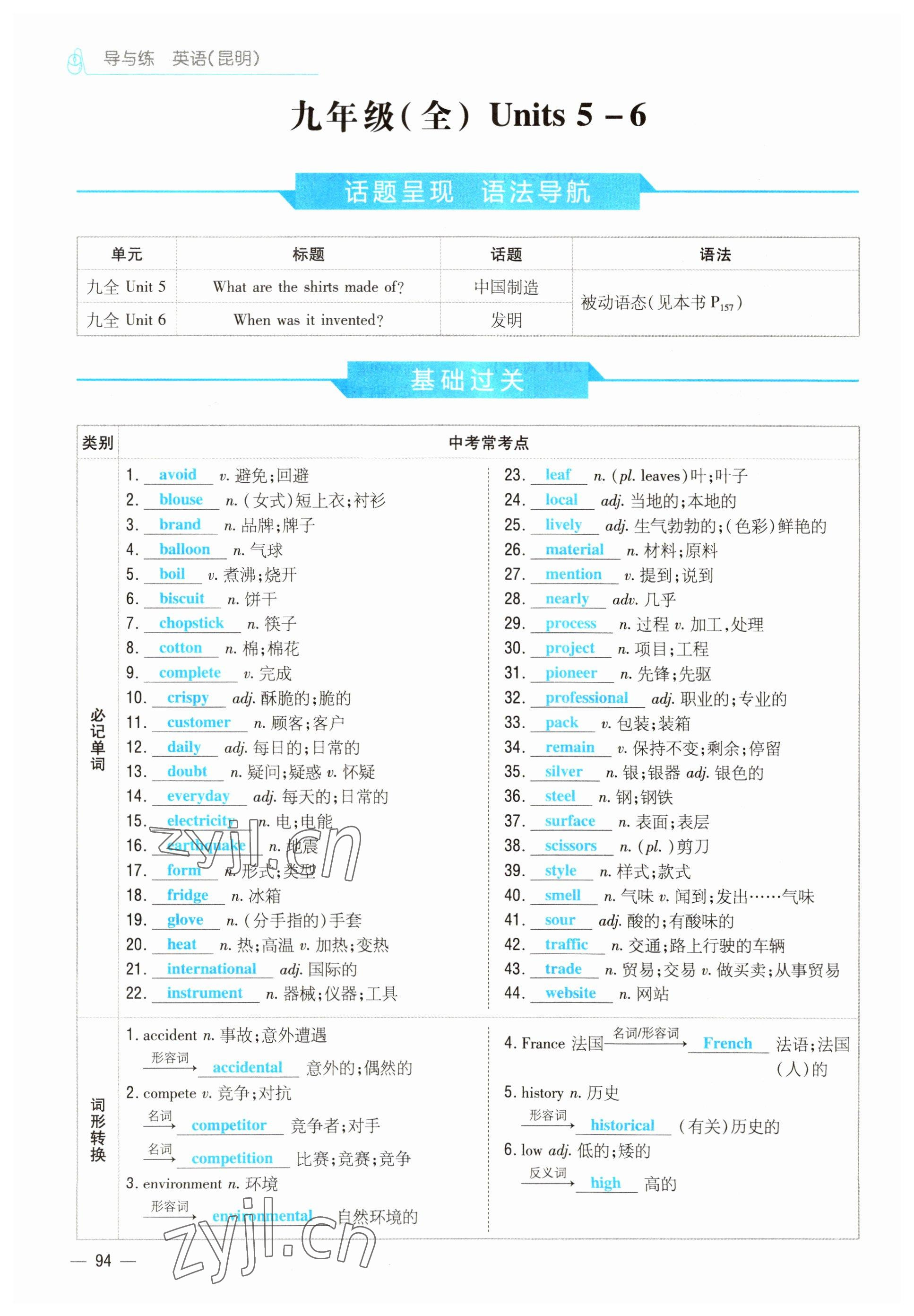 2022年云南省初中学业水平考试导与练英语昆明专版
