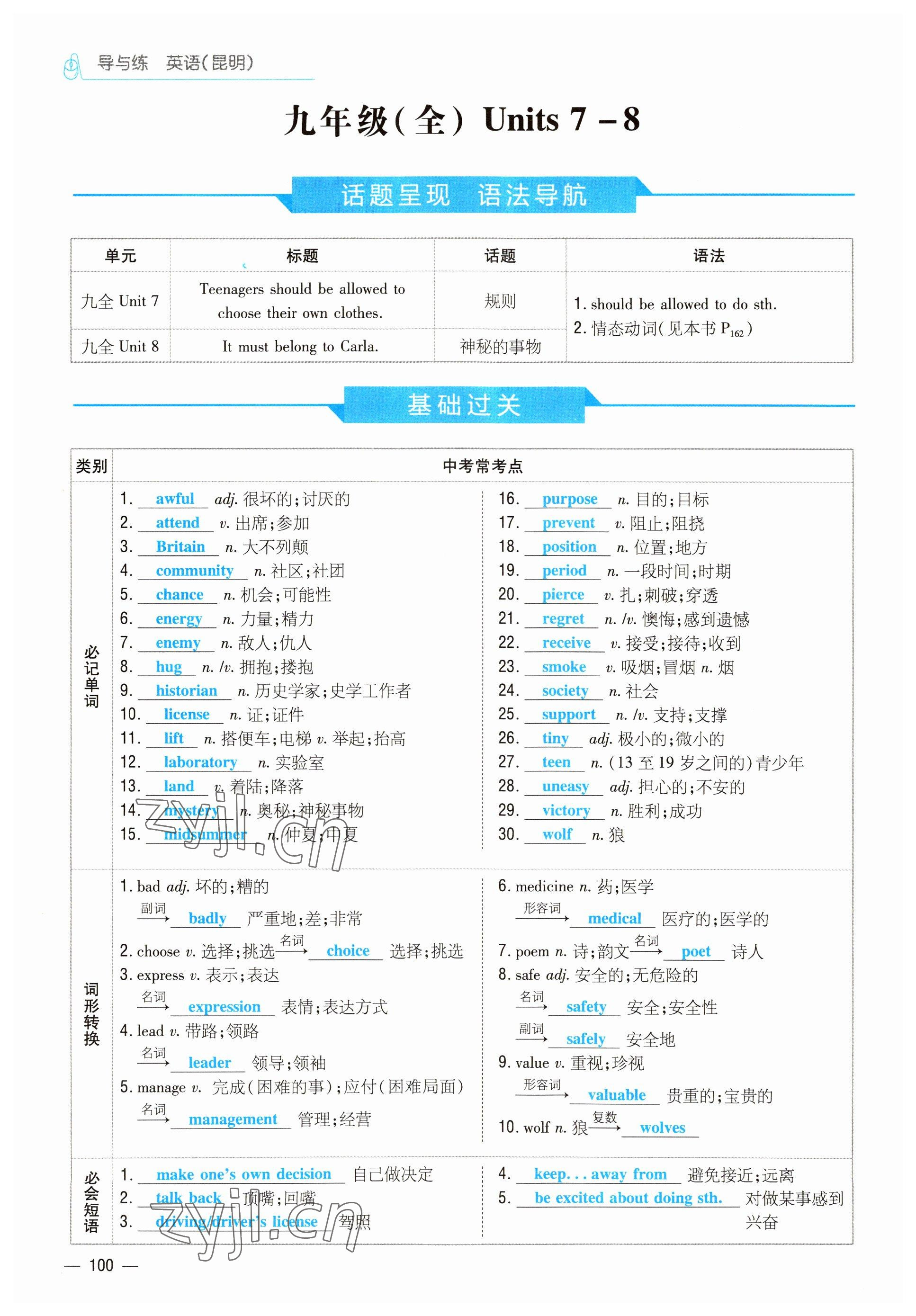 2022年云南省初中学业水平考试导与练英语昆明专版