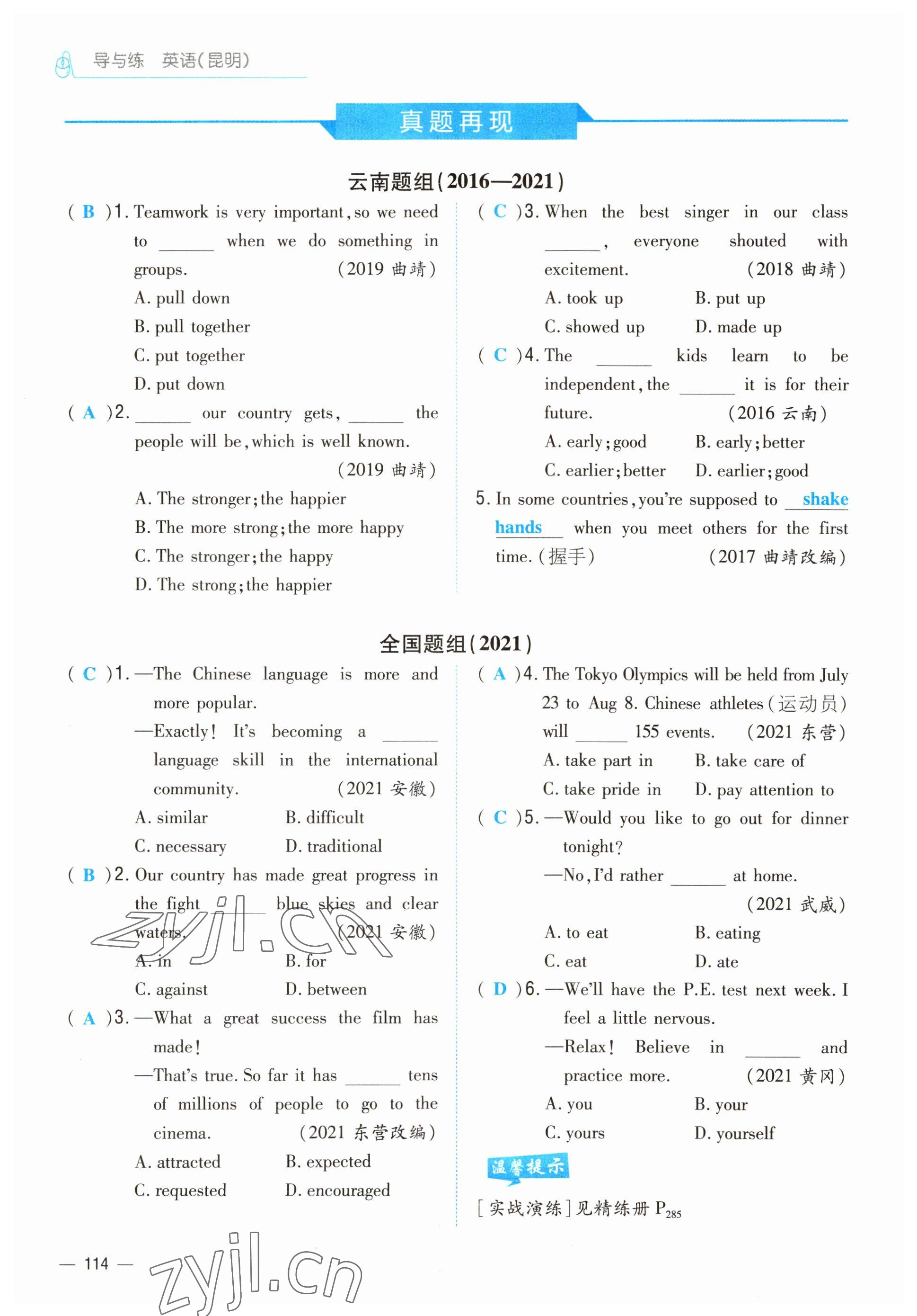 2022年云南省初中学业水平考试导与练英语昆明专版