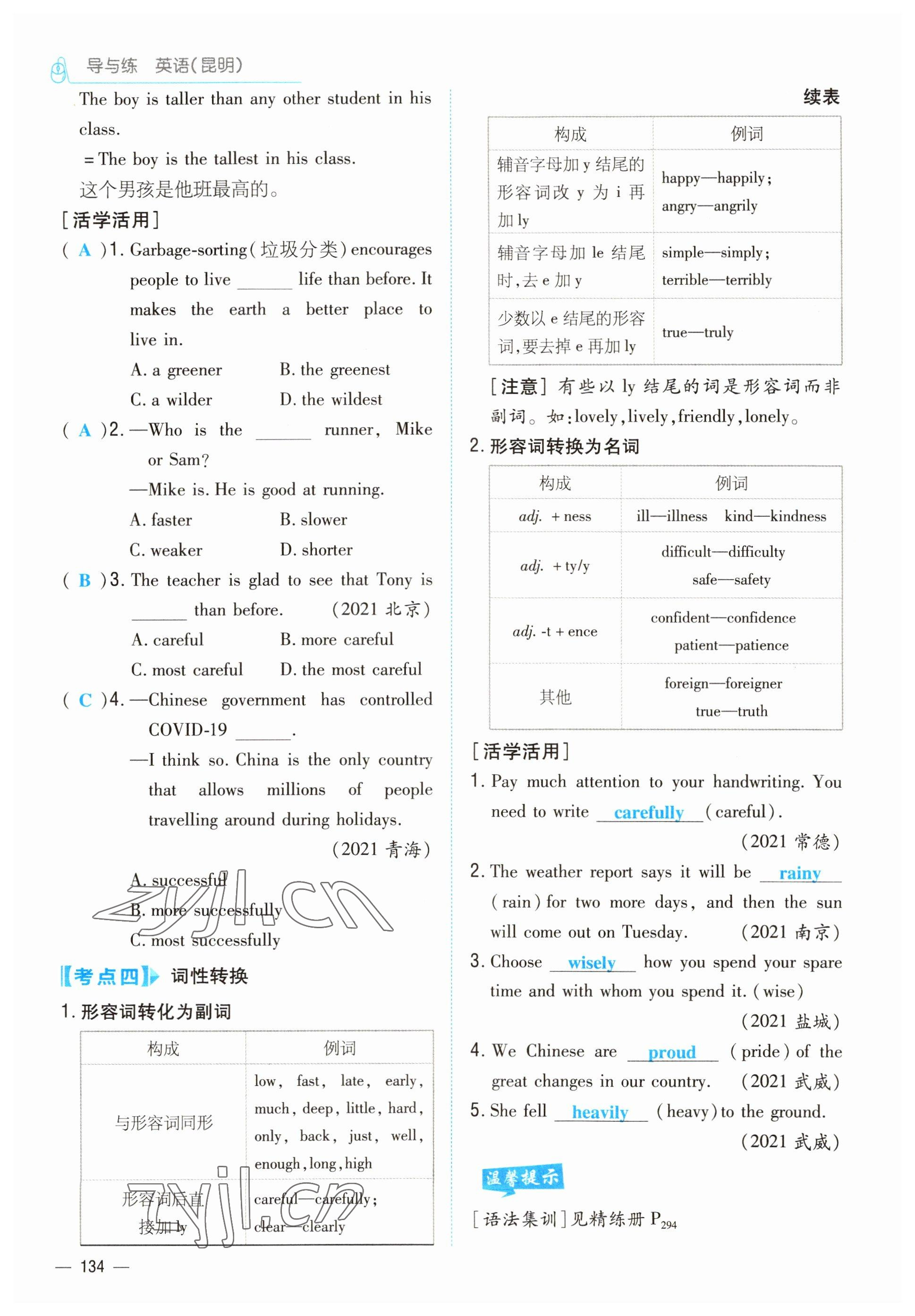 注:目前有些书本章节名称可能整理的还不是很完善,但都是按照顺序排列的,请同学们按照顺序仔细查找。练习册 2022年云南省初中学业水平考试导与练英语昆明专版 答案主要是用来给同学们做完题方便对答案用的,请勿直接抄袭。