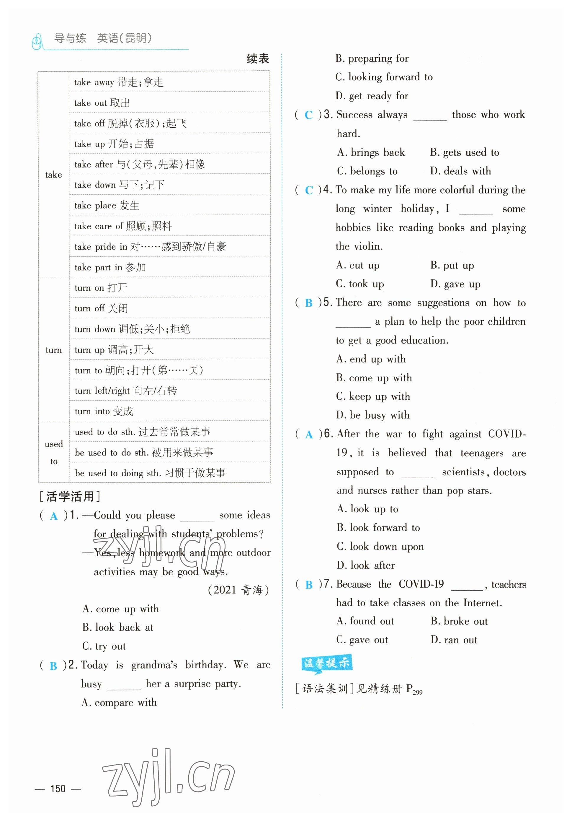 注:目前有些书本章节名称可能整理的还不是很完善,但都是按照顺序排列的,请同学们按照顺序仔细查找。练习册 2022年云南省初中学业水平考试导与练英语昆明专版 答案主要是用来给同学们做完题方便对答案用的,请勿直接抄袭。