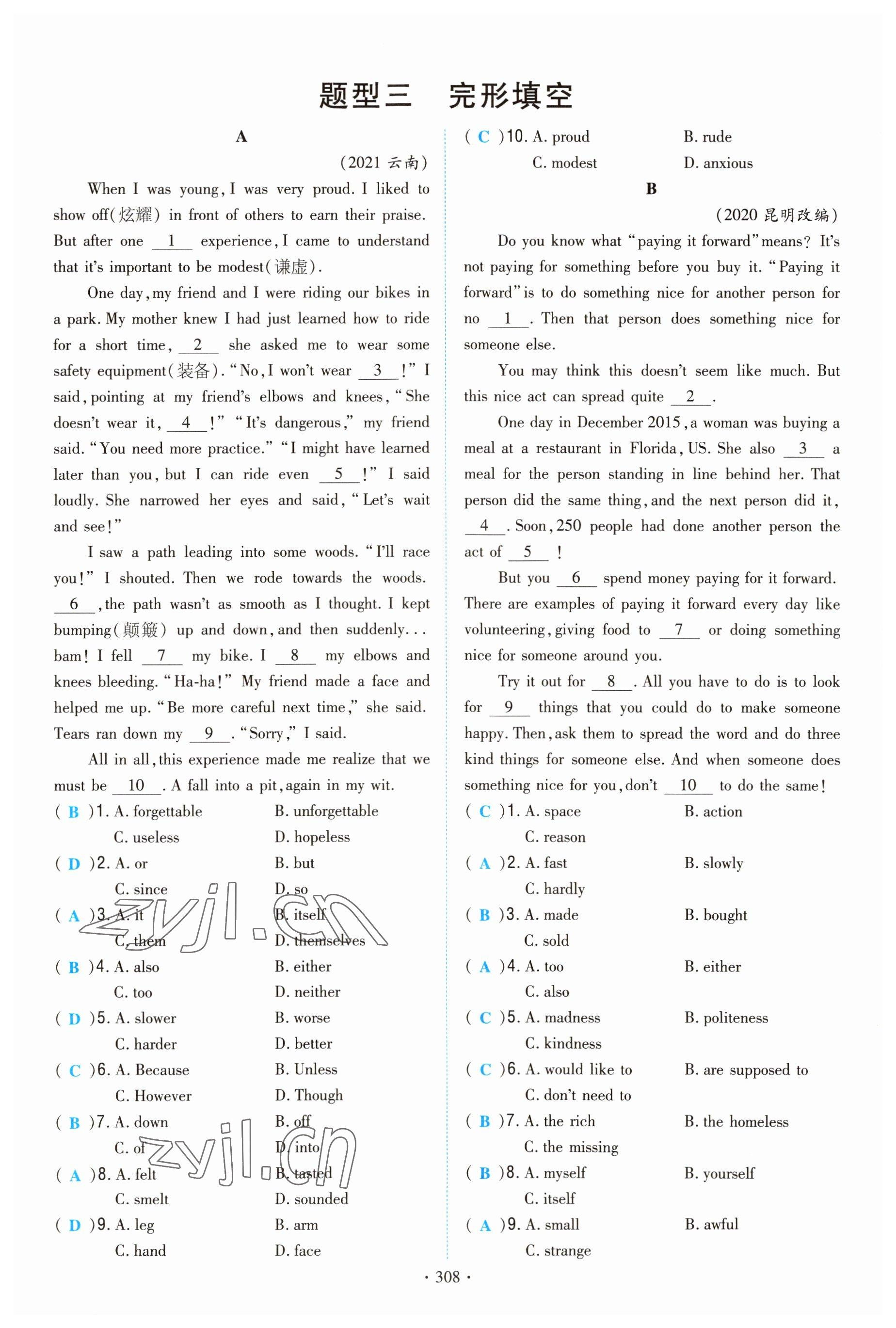 注:目前有些书本章节名称可能整理的还不是很完善,但都是按照顺序排列的,请同学们按照顺序仔细查找。练习册 2022年云南省初中学业水平考试导与练英语昆明专版 答案主要是用来给同学们做完题方便对答案用的,请勿直接抄袭。