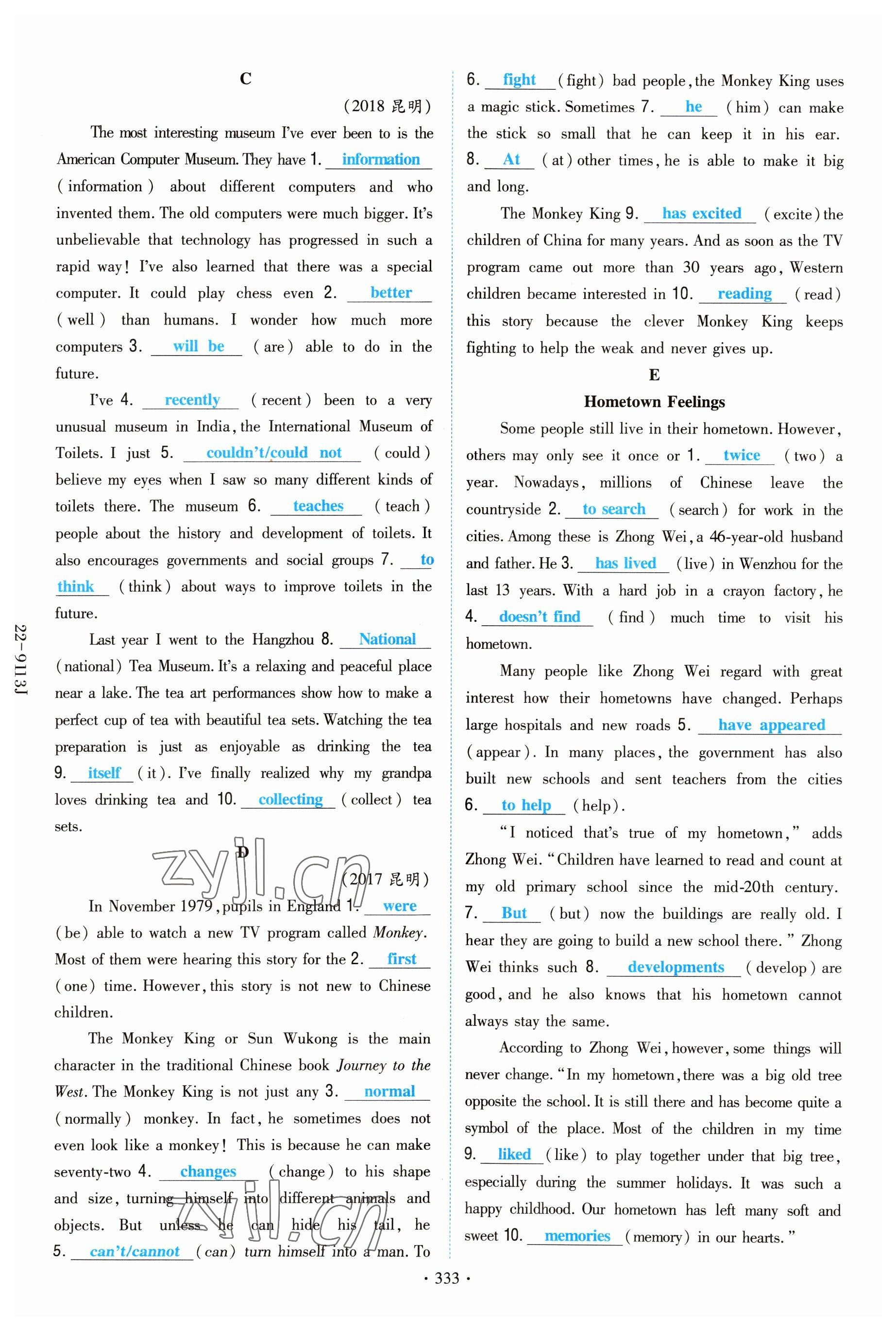 注:目前有些书本章节名称可能整理的还不是很完善,但都是按照顺序排列的,请同学们按照顺序仔细查找。练习册 2022年云南省初中学业水平考试导与练英语昆明专版 答案主要是用来给同学们做完题方便对答案用的,请勿直接抄袭。