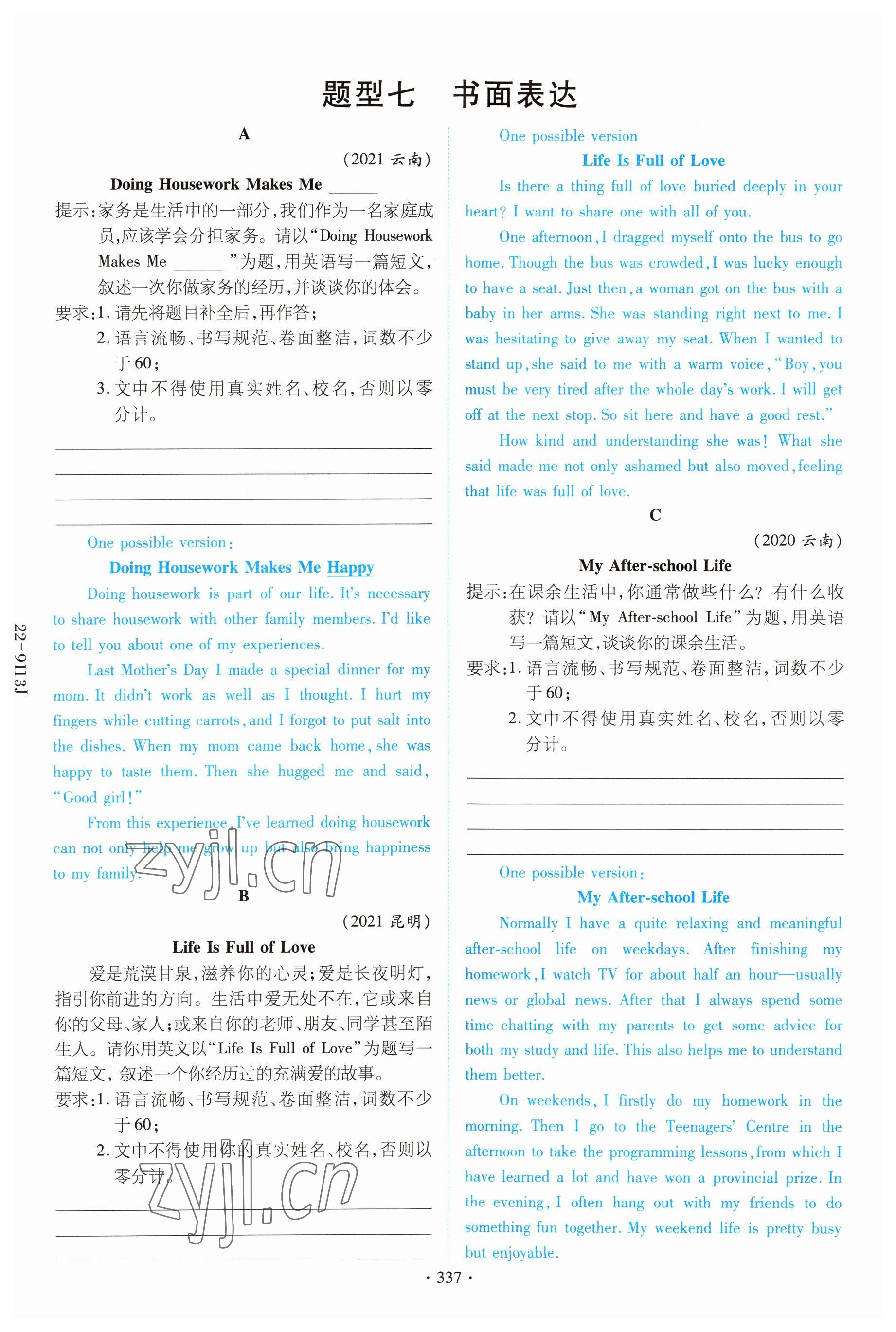 2022年云南省初中学业水平考试导与练英语昆明专版