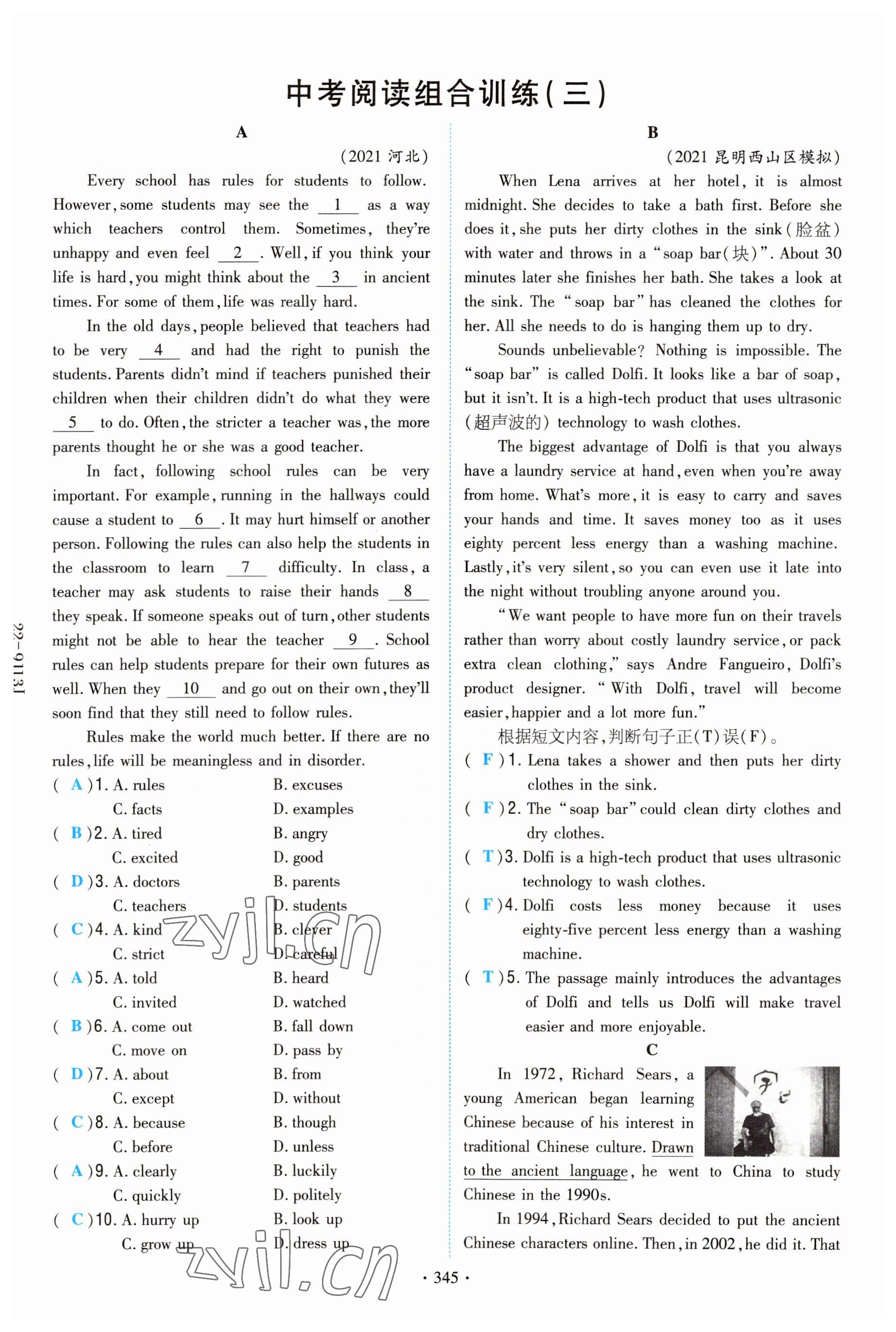 注:目前有些书本章节名称可能整理的还不是很完善,但都是按照顺序排列的,请同学们按照顺序仔细查找。练习册 2022年云南省初中学业水平考试导与练英语昆明专版 答案主要是用来给同学们做完题方便对答案用的,请勿直接抄袭。