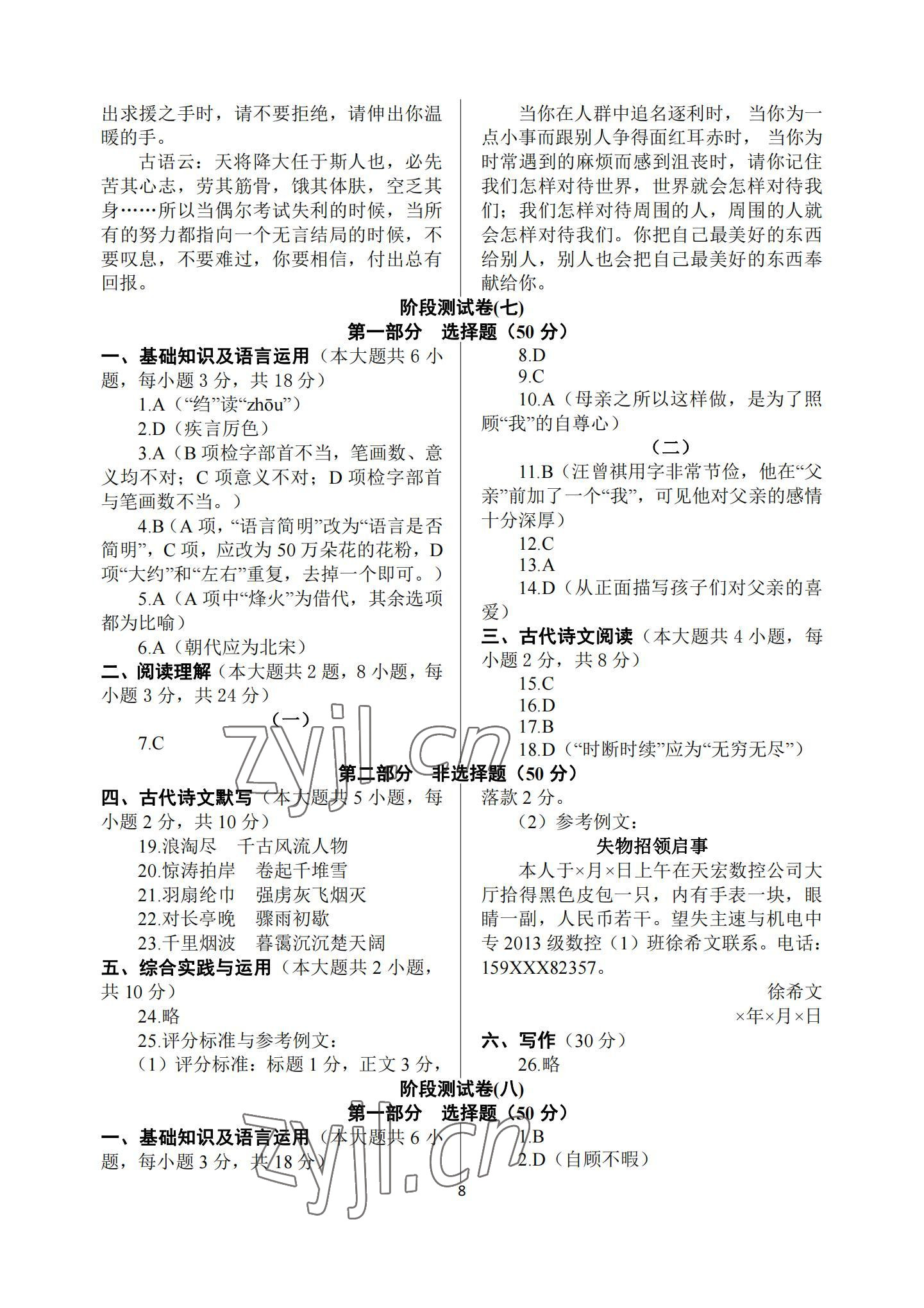 注:目前有些书本章节名称可能整理的还不是很完善,但都是按照顺序排列的,请同学们按照顺序仔细查找。练习册 2022年学业水平考试中职一年级语文 答案主要是用来给同学们做完题方便对答案用的,请勿直接抄袭。
